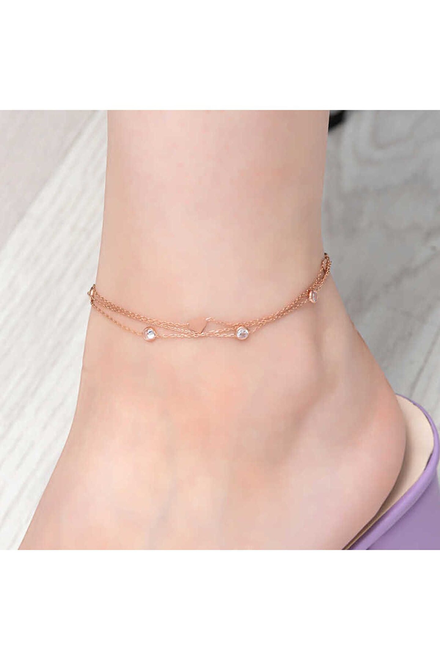 Himarry Gümüş Rose Çift Zincirli Kalp Zirkon Taşlı Halhal