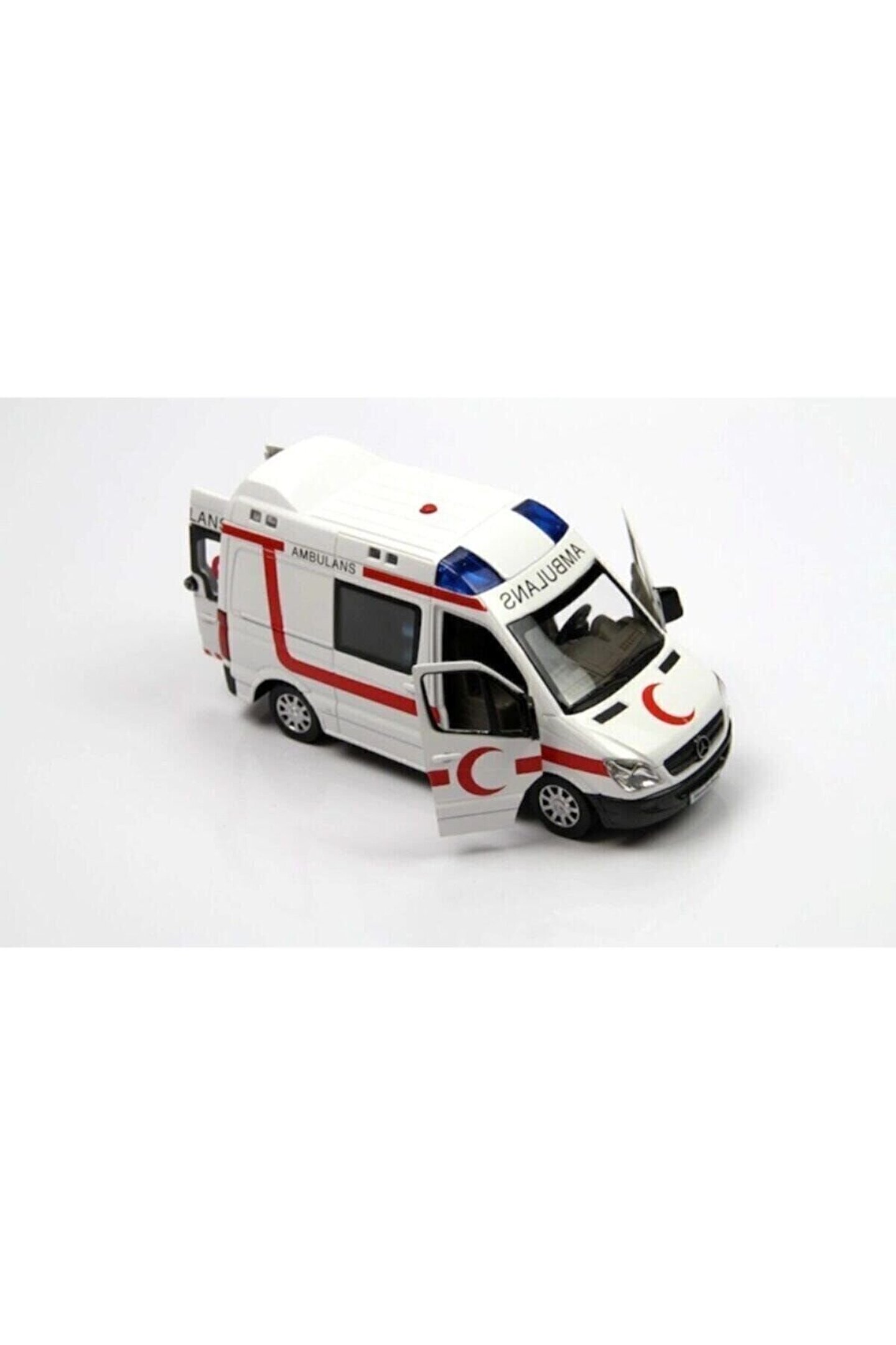 Lisanslı mercedes-Benz sprinter oyuncak ambulans metal Orjinal lisanslı üründür Metal diecast model araçtır Sesli ve sirenlidir ön tekerleklerine basılınca ses çıkartır ayrıca üstündeki kırmızı düğmeye basıldıgında siren sesi çıkartır Çek bırak özelliği vardır Sirenleri ve ışıkları vardır ses çıkartır ve ışıklıdır Ce belgelidir ve kesinlikle hiçbir zararlı madde içermez