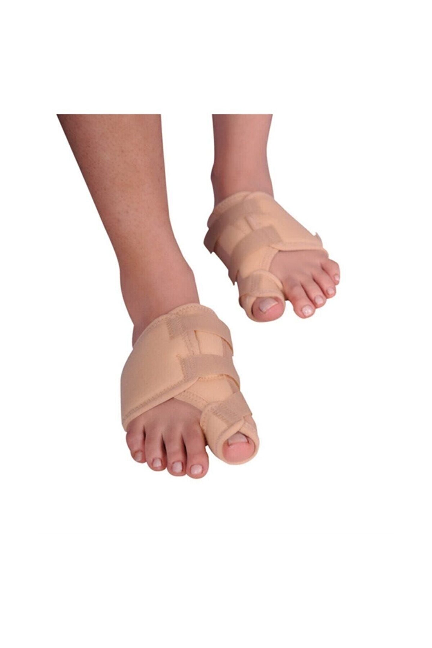 HALLUKS VALGUS PROBLEMİNDE; AYAK BAŞ PARMAĞINI DIŞA BÜKÜK TUTMAK İÇİN VE AMELİYAT SONRASI TEDAVİ SÜRECİNDE KULLANILIR. STANDART BOYDUR. UYKU BUNYONU YUMUŞAK SÜNGERLİ BİR DESTEK İLE BAŞPARMAĞI SABİTLER BANT SAYESİNDE PARMAĞI NORMAL POZİSYONA DOĞRU İTEREK DÜZELMESİNE YARDIMCI OLUR. YÜRÜME ESNASINDA GECE BUNYONUNU KULLANMAYINIZ. GECE UYKU ESNASINDA KULLANILIR. GECE UYKU BUNYONU GÜN BOYU YAŞADIĞINIZ AĞRILARIN AZALMASINA YARDIMCI OLUR VE DİNLENMESİNE OLANAK SAĞLAR. AYNI ZAMANDA BİR SONRAKİ GÜN İÇİN AYAK BAŞ PARMAKLARINIZI HAZIRLAMAYA YARDIMCI OLUR. ERTESİ GÜN İÇİN BAŞ PARMAKLARINIZI HAFİFÇE GERDİREREK HİZALAMAYA YARDIMCI OLUR. RAHAT GÜVENLİ VE SON DERECE KULLANIŞLI BİR GECE ATELİDİR DÜNYA ÇAPINDA ORTOPEDİK ZAMANLA OLUŞACAK KİRLENME DURUMUNDA SÜNGERLER YIKANABİLİR YADA NEMLİ BEZLE SİLİNEBİLİNİR, PLASTİK KISIMLAR AYNI ŞEKİLDE SİLİNİR VE TEMİZLENEBİLİR. HER GÜN OLUŞAN AĞRILARINIZIN AZALMASINA YARDIMCI OLUR. KULLANIMI ÖN BAŞ PARMAĞININ İÇ KISMINA GELECEK ŞEKİLDE SÜNGERİ PLASTİK İLE PARMAK ARASINA KOYDUKTAN SONRA UYGULAYINIZ. AYAK BAŞ PARMAĞINDA HANGİ AYAĞA TAKILACAK OLMASI İÇİN PLASTİK KISIMLARDAKİ R ( SAĞ ) VE L ( SOL ) YAZILARINA UYGUN OLARAK YERLEŞTİRME YAPIN. CIRT ARACILIĞI İLE GERDİRME İŞLEMİNİ YAPARAK KAYIŞ KISMINI GERİN VE SIKI BİR ŞEKİLDE DİĞER KISMA YAPIŞTIRIN. KAYIŞIN SIKILMA ESNASINDA DİKKAT EDİLMESİ GEREKEN HUSUS, BAŞ PARMAĞIN BASKI SONUCU GERİLMESİNE DİKKAT EDİNİZ VE PARMAGI GERİLİ ŞEKİLDE HİZALAYIN CIRTI TAKINIZ