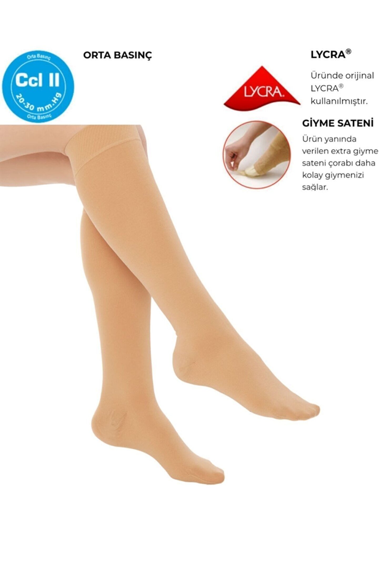 medikaltec Ccl2 Diz Altı Burnu Kapalı Çorabı Ten