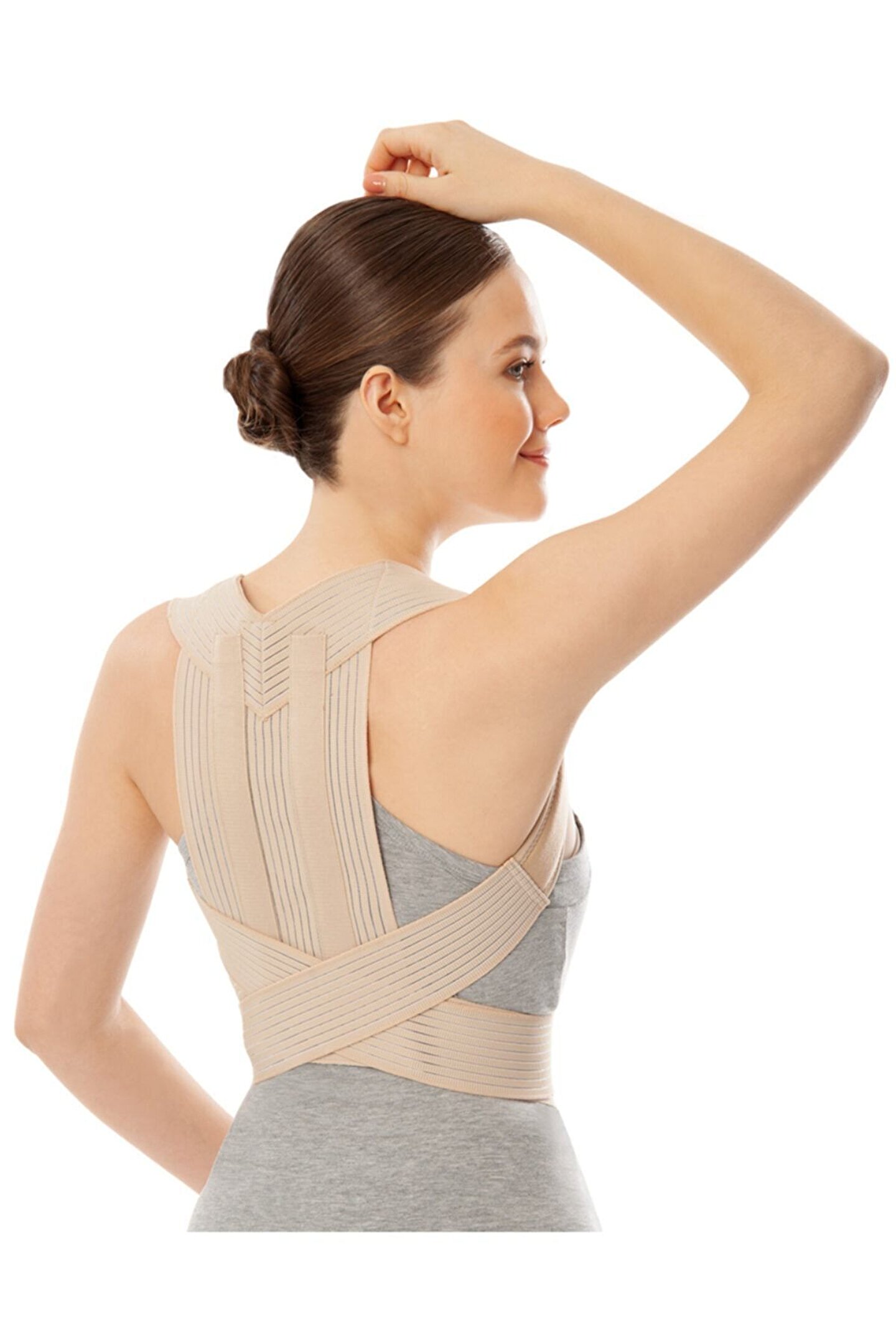 Rahat ve düz bir görünüm için ideal, bej renkli dik duruş korsesi; Yüksek kaliteli dokuma kumaş yapısı sayesinde uzun süreli kullanım konforu sunar; Unisex tasarımı ile hem kadınlar hem de erkekler için uygun, şık bir aksesuar seçeneği;
