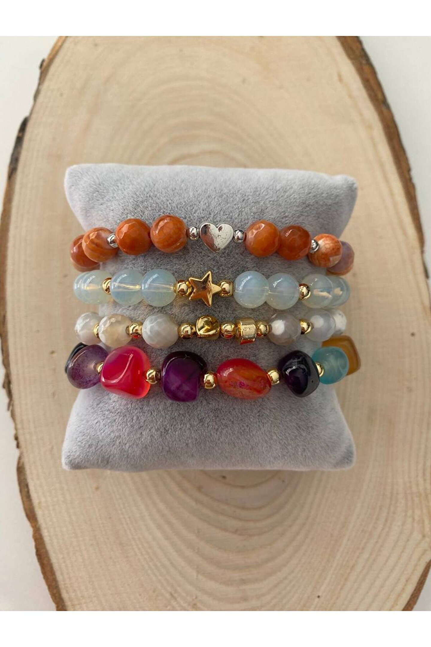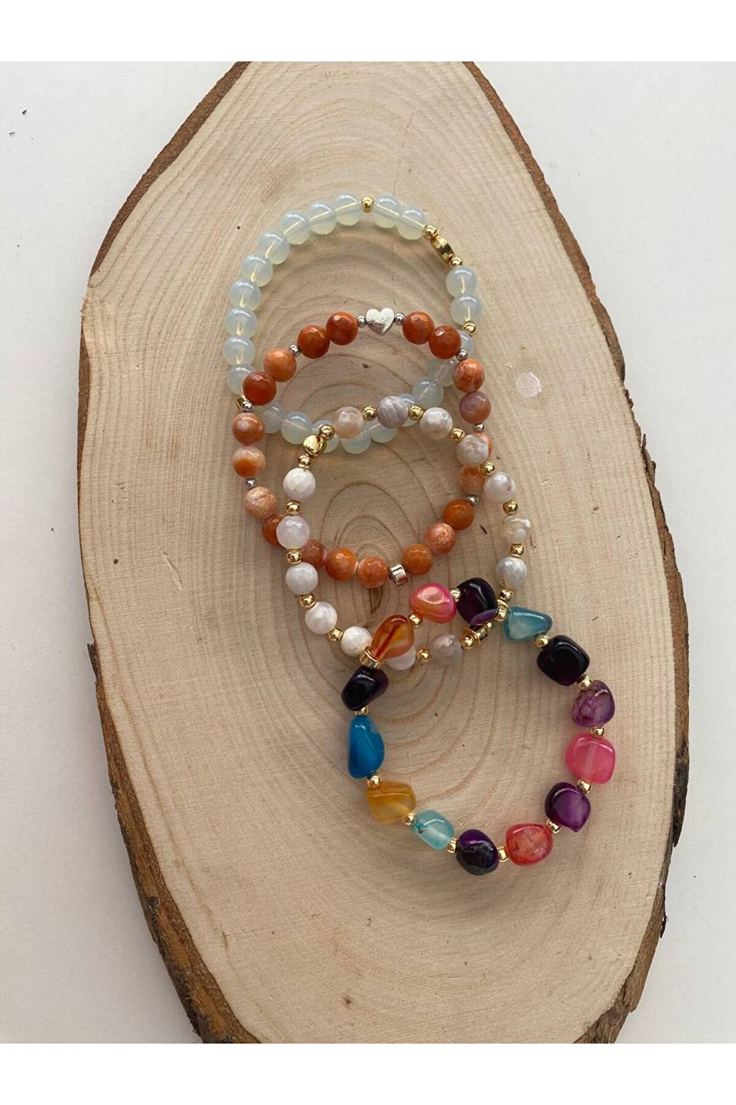 Doğal taş bileklik, şıklığınızı tamamlayacak zarif bir aksesuardır; Ay taşı ve akik taşlarından oluşan bu bileklik, benzersiz ve doğal bir görünüm sunar; Her bir bileklik, el yapımı olarak özenle seçilmiş ve işlenmiştir, bu da her parça için eşsiz bir karakter kazandırır; Akik taşının enerji verici özellikleriyle bilinir; bu bileklik, hem estetik hem de ruhsal faydalar sağlar; Faset kesim akik taşları, ışığı mükemmel bir şekilde yansıtarak bilekliğin parlamasını sağlar ve göz alıcı bir etki yaratır;