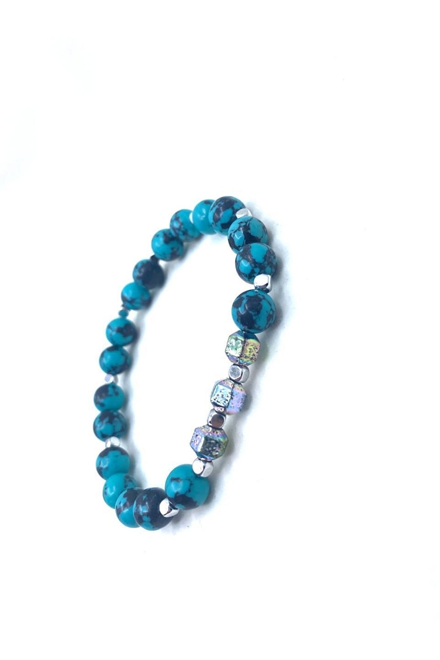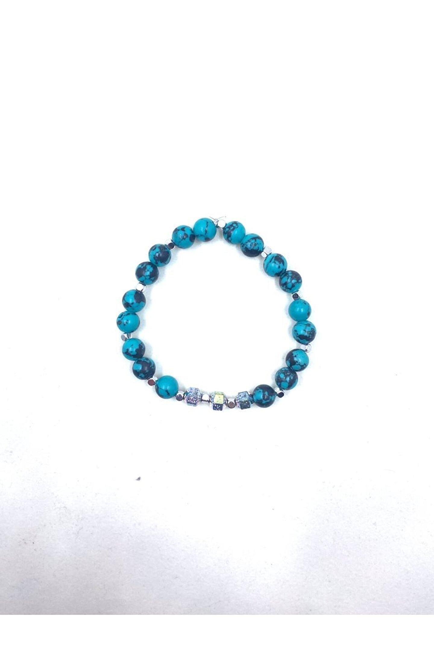 Doğal akik taşı kullanılarak üretilmiş, her bir bileklik benzersiz ve özgün bir tasarıma sahiptir; Mavi akik taşı, bileklikte doğal güzelliğini ve zarafetini yansıtır; Doğal taş materyali sayesinde, her bileklik el yapımı gibi hissettirir ve doğallığıyla dikkat çeker; Akik taşı, enerjiyi dengelemeye yardımcı olur ve şık bir aksesuar olarak günlük kullanım için idealdir;