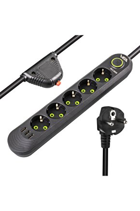 VA-21561 5Lİ 1.5 METRE KABLOLU 3 USBLİ SİYAH AKIM KORUMALI PRİZ Vea VA-21561 Akım Korumalı Priz Özellikleri Vea VA-21561, ev ve ofislerde enerji yönetimini kolaylaştırmak için tasarlanmış yenilikçi bir akım korumalı prizdir. Siyah renkteki şık tasarımıyla odanıza zarif bir görünüm kazandırırken, 1.5 metrelik kablo uzunluğu ile esnek kullanım imkanı sunar.