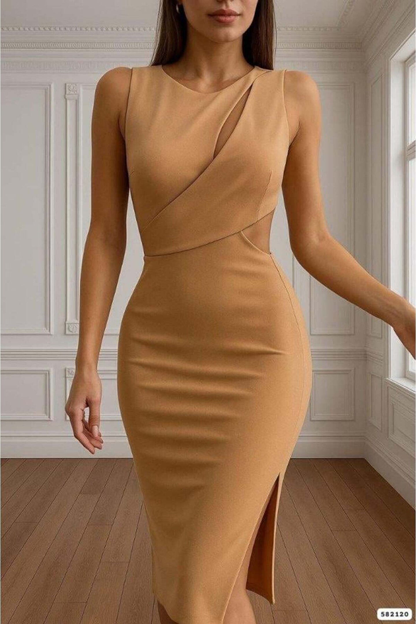 Kadın Goğüs Detaylı Sırt Dekoltelı Yırtmaç Detaylı Scuba Elbise