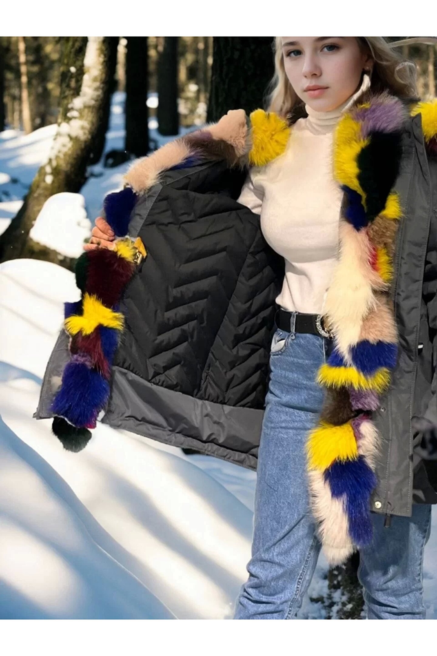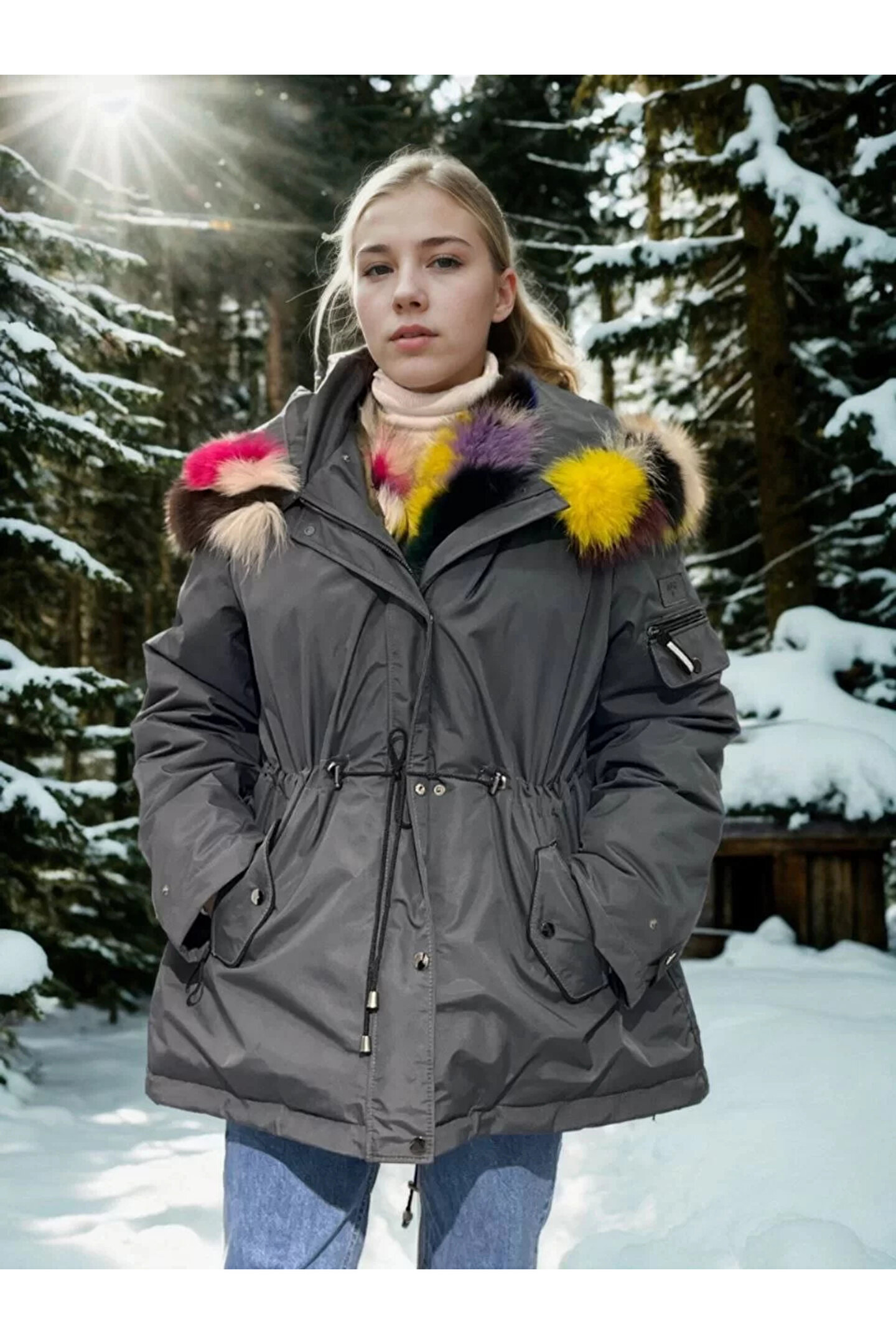 velmorafashion Kadın Su Geçirmez Kapüşonlu Mont - Füme