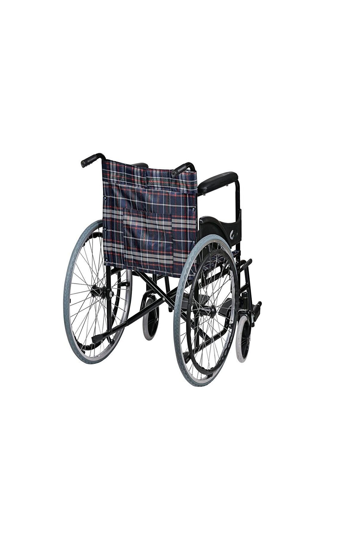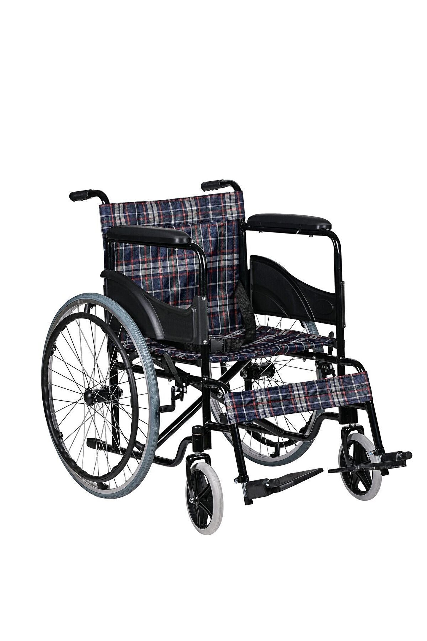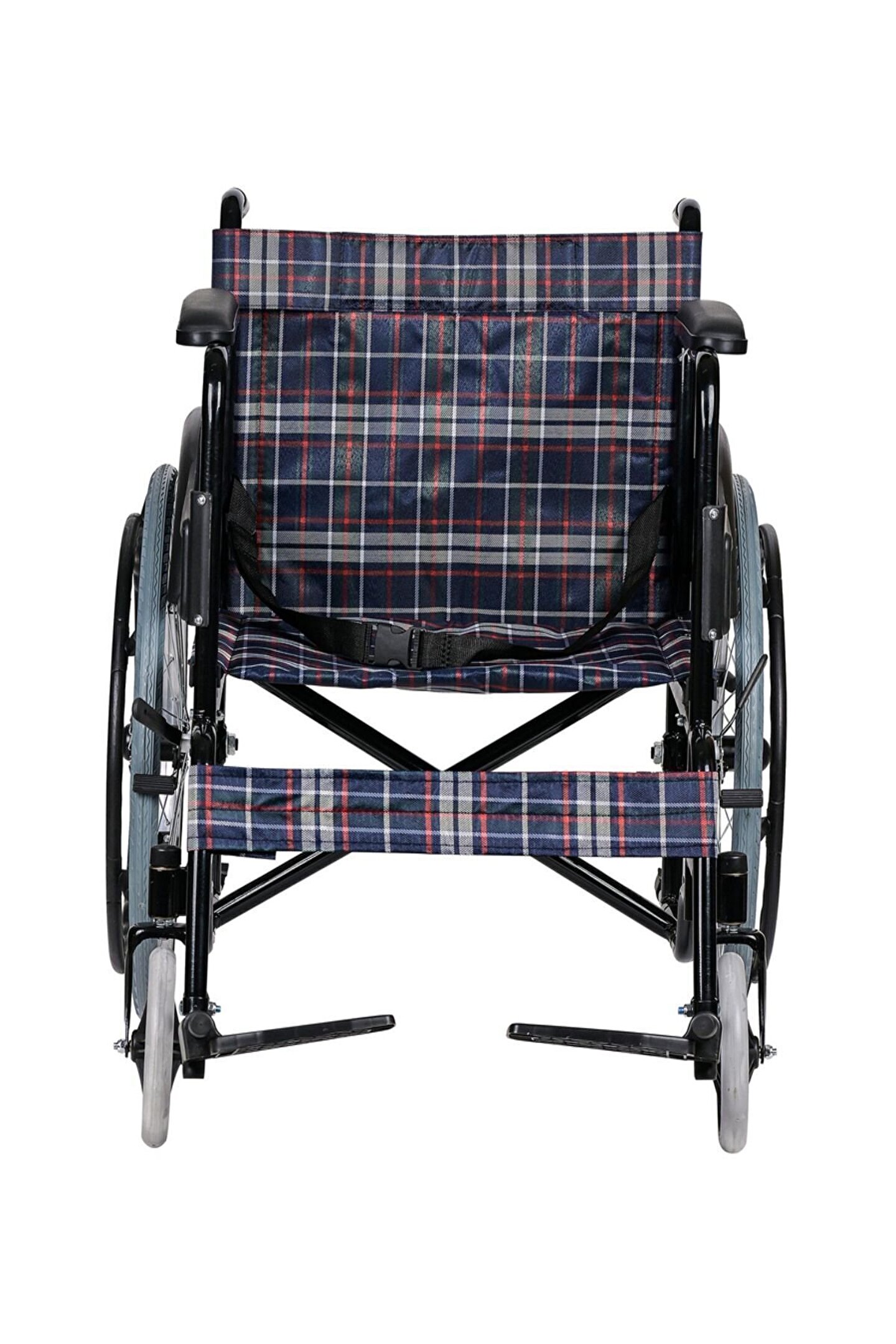 Ürünümüz yerli üretimdir.; ; Kullanıcı frenli, emniyet kemerli, manuel ve katlanabilir transfer sandalyesidir.; ; Çelik gövdeden oluşmaktadır.; Koltuk kısmı ekose desenlidir.; ; Ürünün eşyalarınızı muhafaza edebilmeniz için arka kısmında minik cepler bulunmaktadır bulunmaktadır.; ; Yumuşak kolçak özelliklidir.; ; Arka tekerlek çap 58 cm, ön tekerlek çap 20 cm'dir.; ; Ürünün tam genişliği 68 cm, tam uzunluğu 92 cm'dir.; ; Koltuk genişliği 52 cm, koltuk derinliği 40 cm, koltuk arkalığının yüksekliği 42 cm'dir.; ; Koltuk kısmının yerden yüksekliği 54 cm, kolluk yüksekliği 35 cm'dir.; ; Ürünün katlanmış genişliği 27 cm'dir.; Ev içerisinde kullanım için gri renkte tasarlanmış tekerlekler bulunmaktadır.; İstanbul'da ki üretim te'sisimizde boru lazer kesimiyle, lazer kaynak makinesiyle kaynatılmış olup şık bir görünüm sunmaktadır.; Koli ebadı: 74*27*93cm