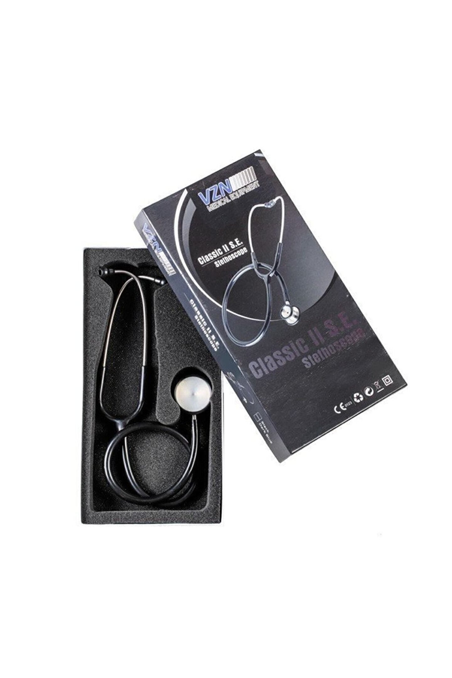 VZN Classic II S.E. Steteskop TS-S02 Kardiyoloji çift taraflı steteskop Teknik Özellikler Yetişkinlerde kullanım için Derin koni şeklinde çan ; İç yaylı ve çift borulu non-chill Y hortumu ; Paslanmaz çelik göğüs parçası ve binaural ; Siyah tüp (veya diğer renk tüpü) ; Yumuşak kauçuk kulak uçları ; Steteskop koruması için içi süngerli kutu ;
