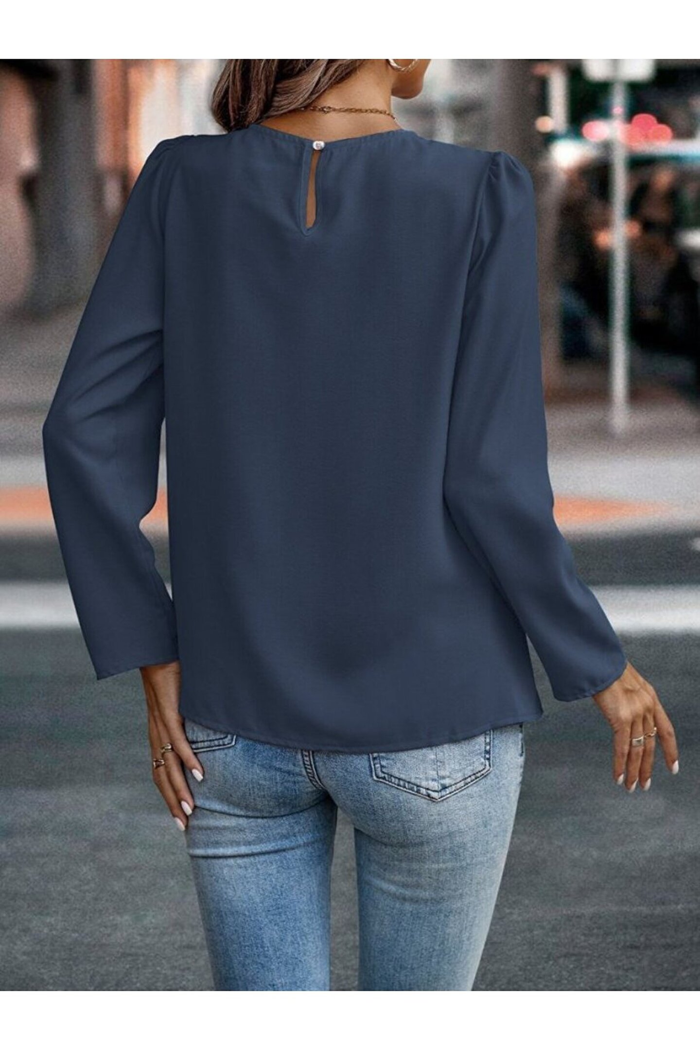 Kadın Uzun Kollu Yuvarlak önden Pileli Ithal Krep Bluz