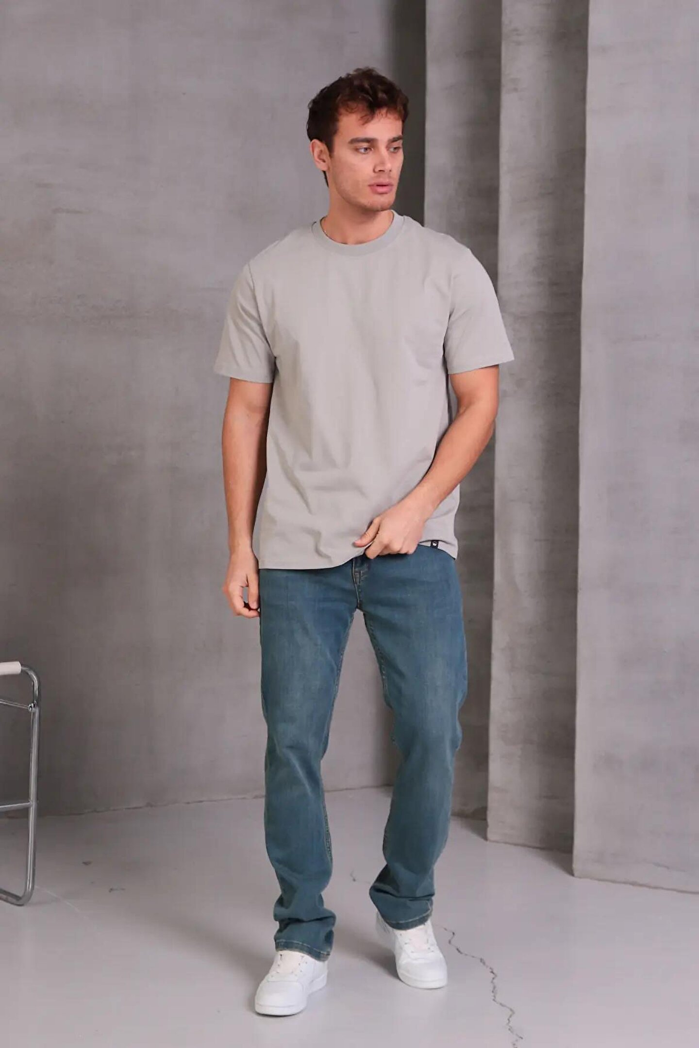 Erkek Relax Fit Bisiklet Yaka %100 Pamuk Rahat Kesim Basic Tişört