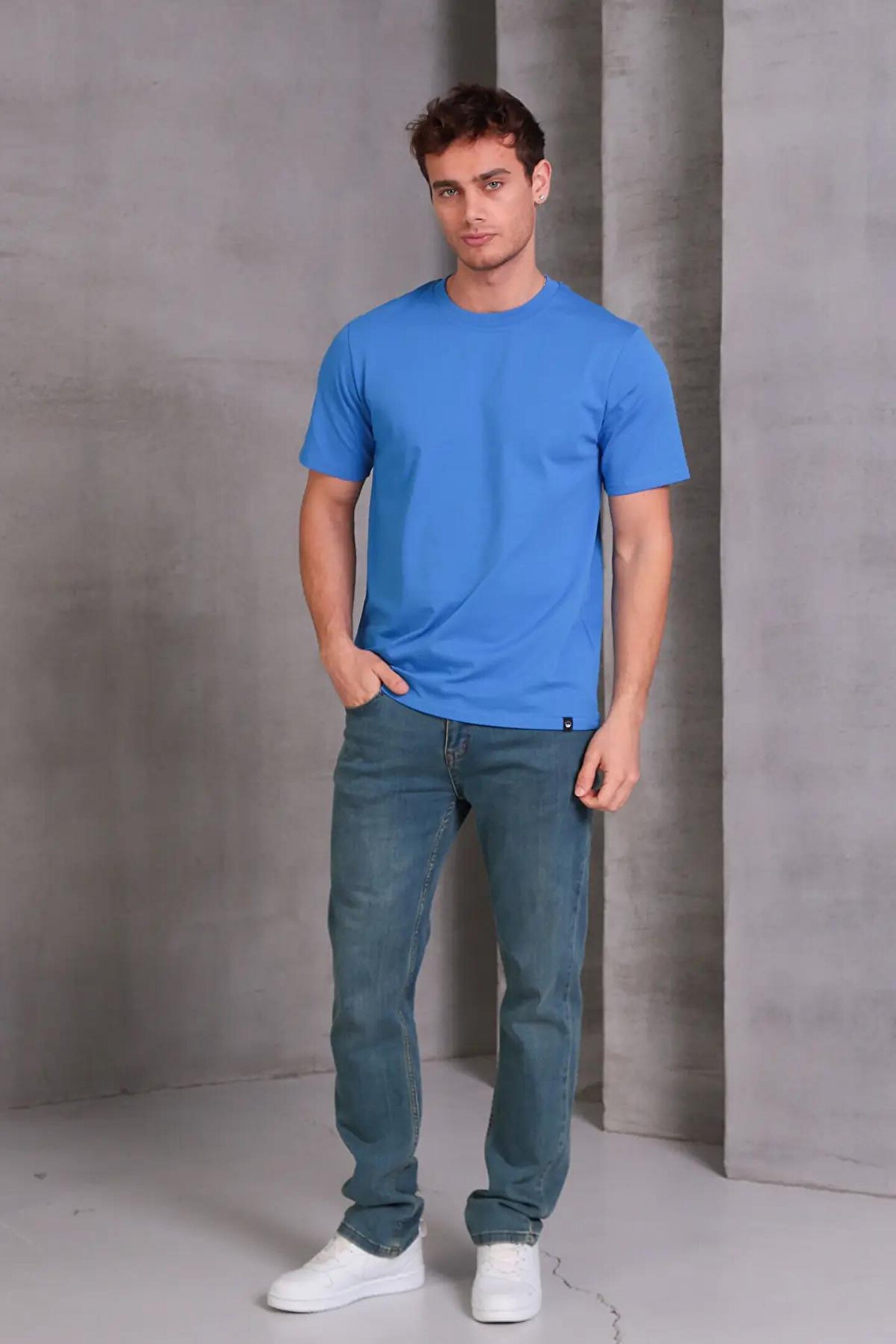Erkek Relax Fit Bisiklet Yaka %100 Pamuk Rahat Kesim Basic Tişört