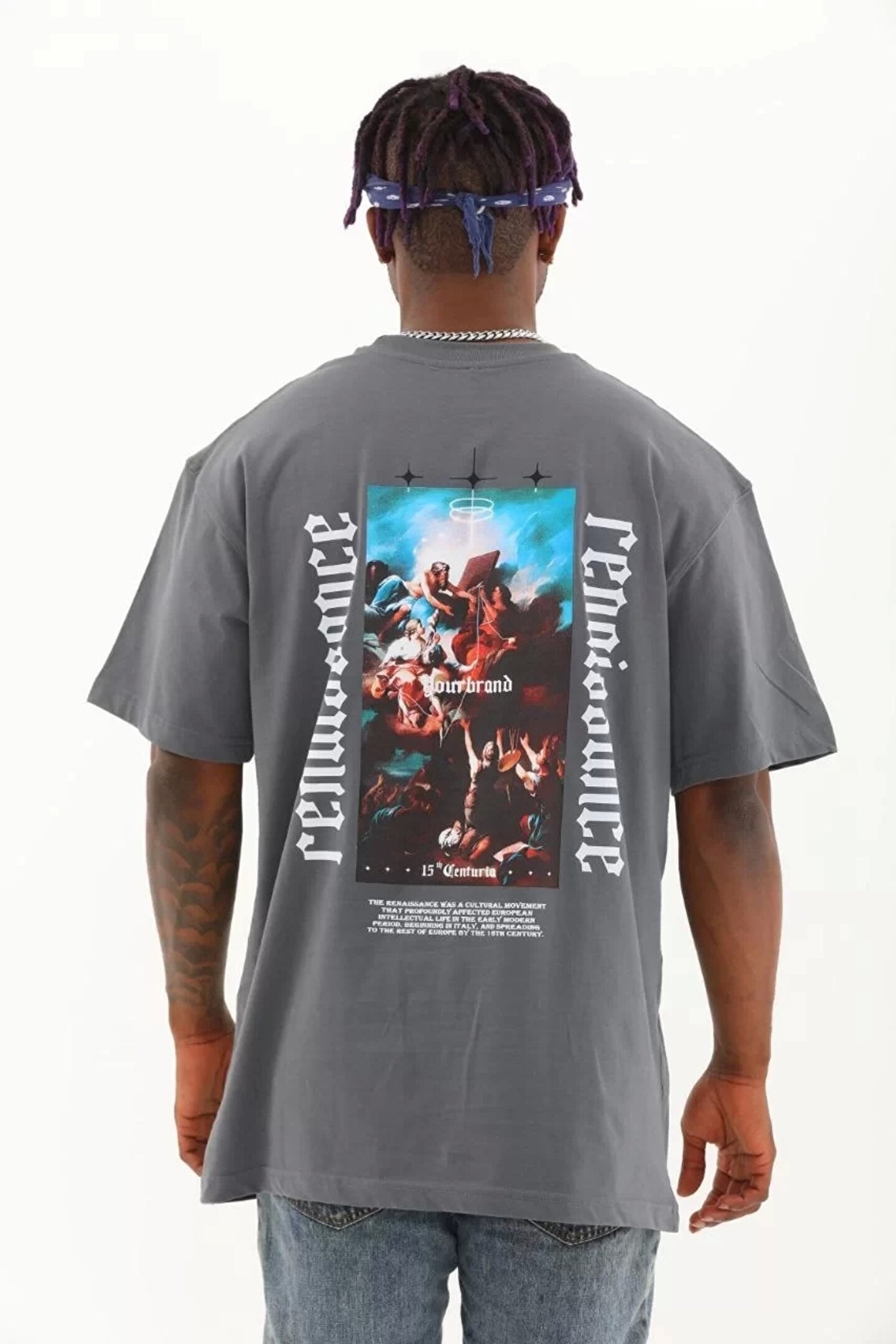 Unisex Oversize Baskılı Bisiklet Yaka T-Shirt - Füme bizi tercih ettiğiniz için teşekkür ederiz
