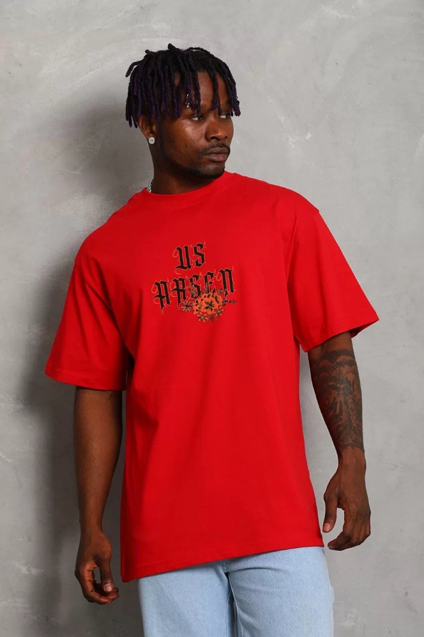 Wear Up Unisex Oversize Baskılı Bisiklet Yaka T-Shirt - Kırmızı