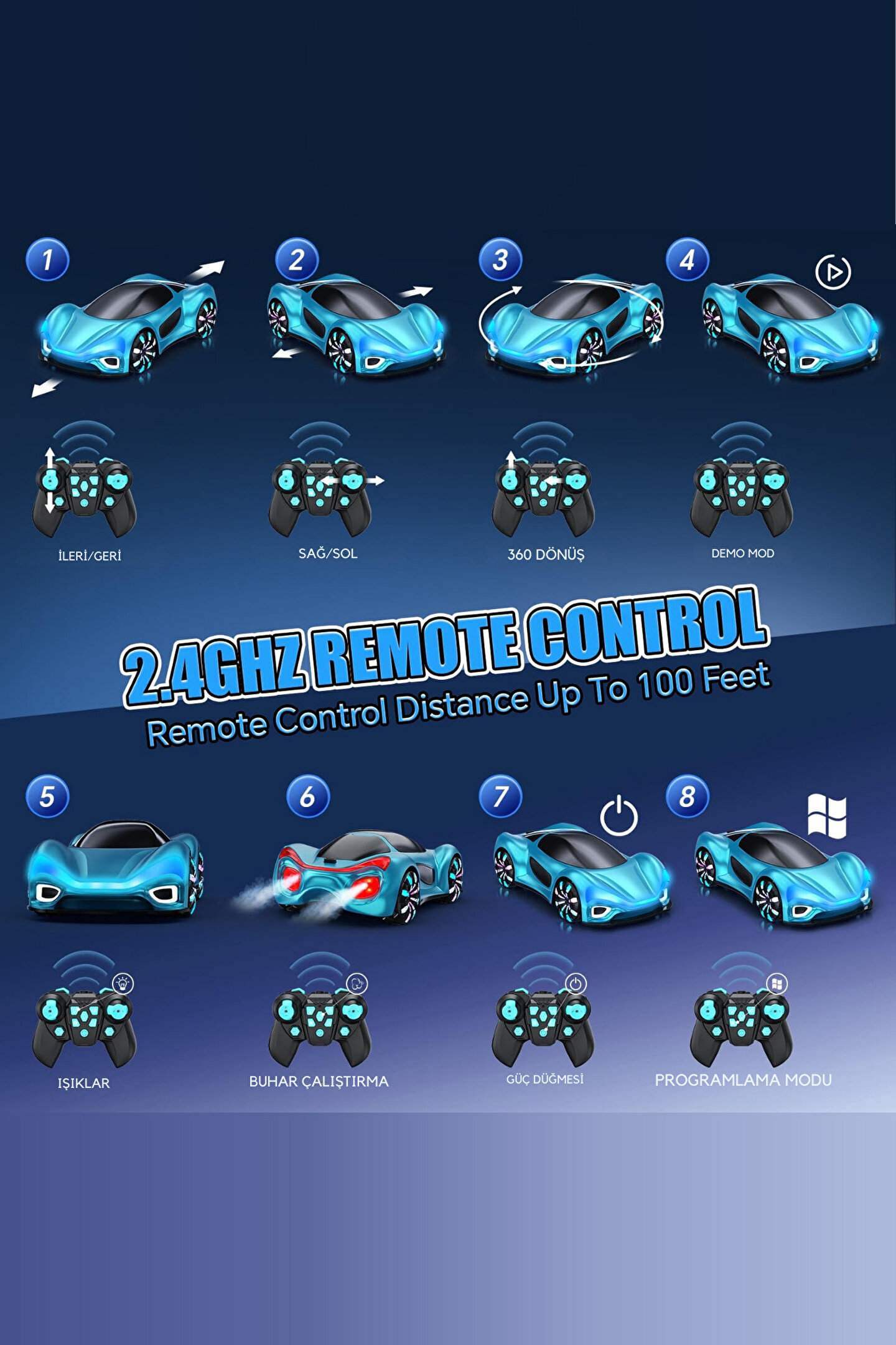 Uzaktan Kumandalı 2.4G Şarjlı Işıklı Müzikli Spor Araba, modern tasarımı ve dikkat çekici özellikleriyle hem çocuklar hem de araba meraklıları için eğlenceli bir deneyim sunar. 1:24 ölçekli bu özel prototip elektrikli araç oyuncağı, şık görünümü ve fonksiyonel yapısıyla gerçek bir spor otomobili aratmayan detaylara sahiptir. Güçlü 2.4 GHz kumanda sistemi sayesinde kolayca kontrol edilebilir, aynı anda birden fazla araçla karışmadan yarış yapılabilir.