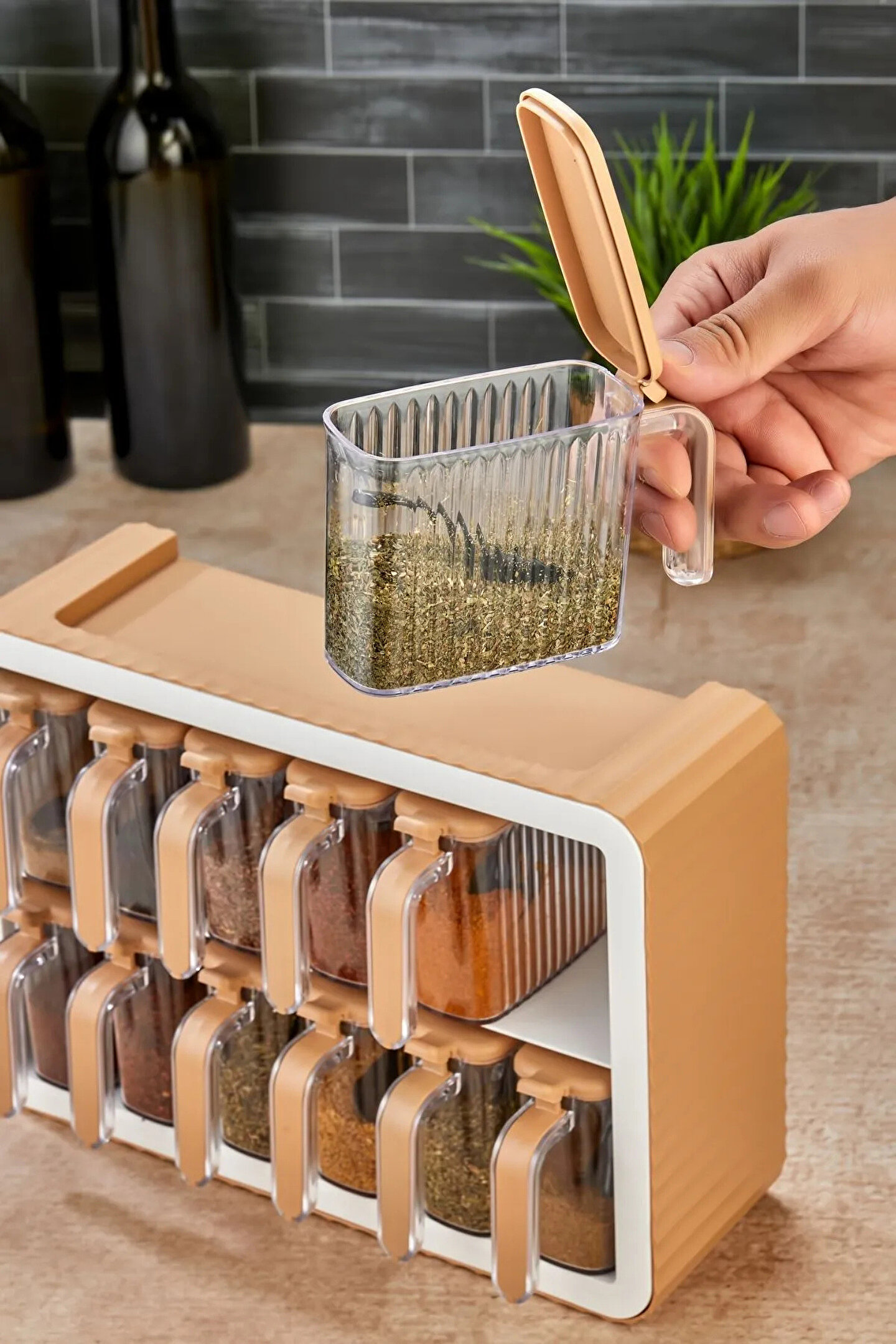 welcomein 12li Standlı Kendinden Yapışkanlı Kapaklı Kaşıklı Kulplu Etiketli Çizgili Baharatlık Takım Organizer