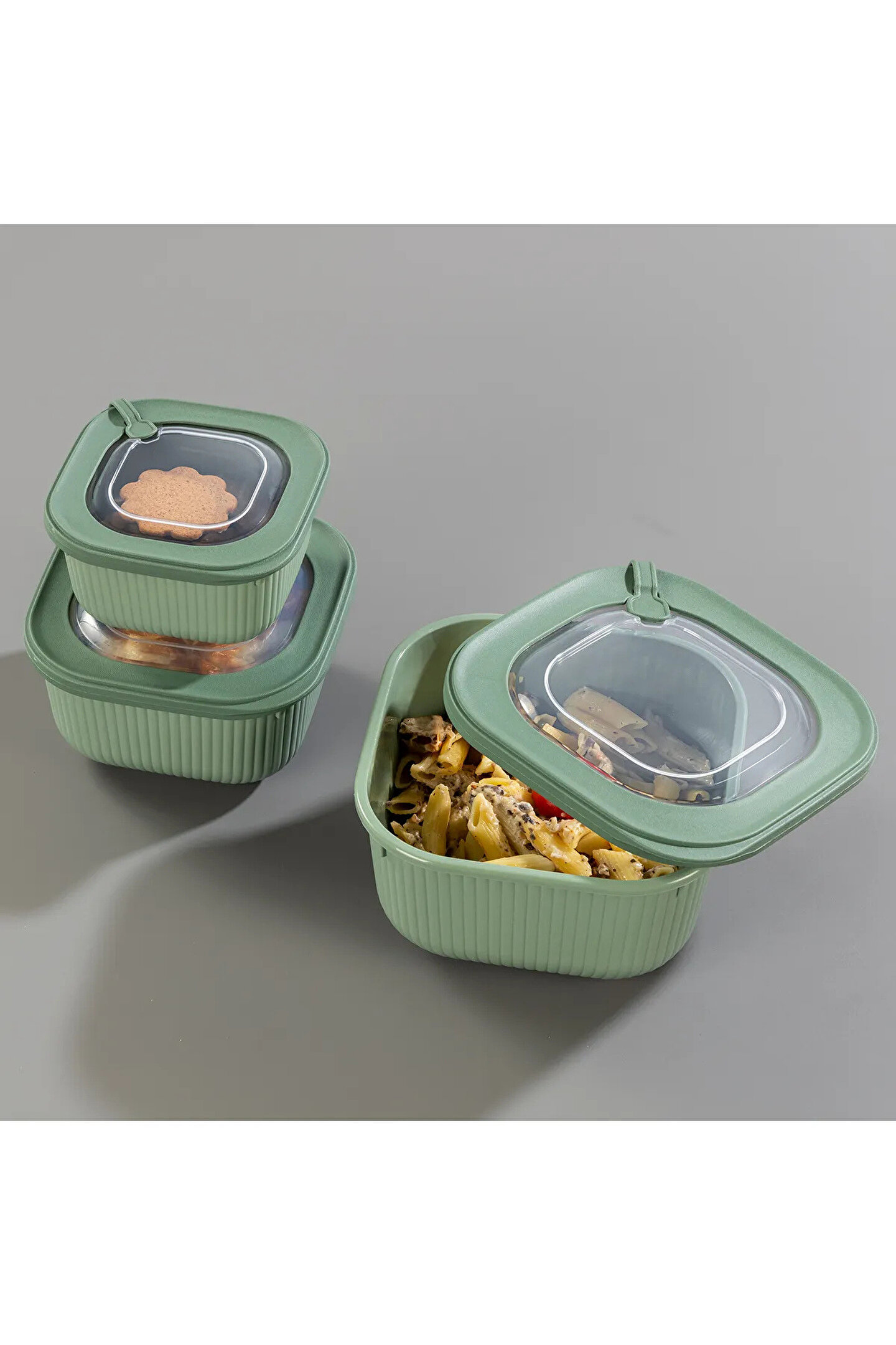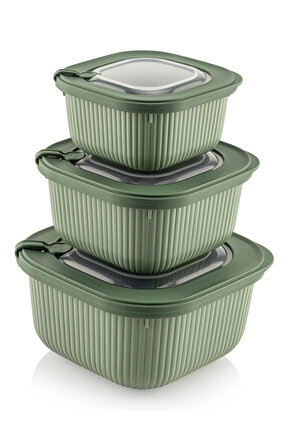 welcomein 3lü Mikrodalga Ve Difrize Uygun Vip Kapaklı Özel Saklama Kabı Seti Bej