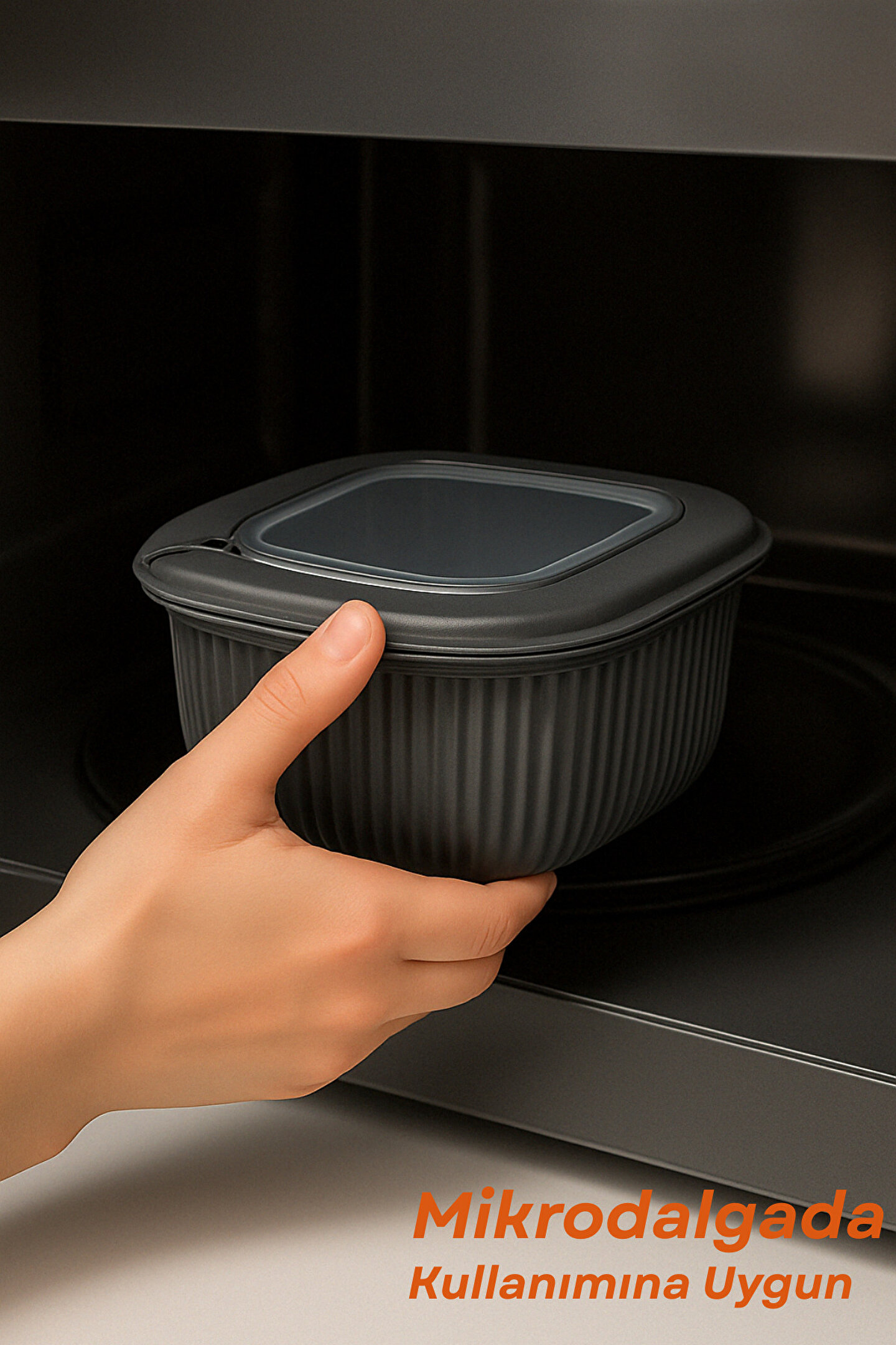 Mutfakta hem düzen hem de şıklık arayanlar için tasarlanmış bu antrasit renkli, modern tasarımlı saklama kabı, günlük kullanım için mükemmel bir yardımcıdır. Mikrodalgada ısıtılabilir, buzdolabında güvenle saklanabilir ve gıdalarınızı taze tutar.