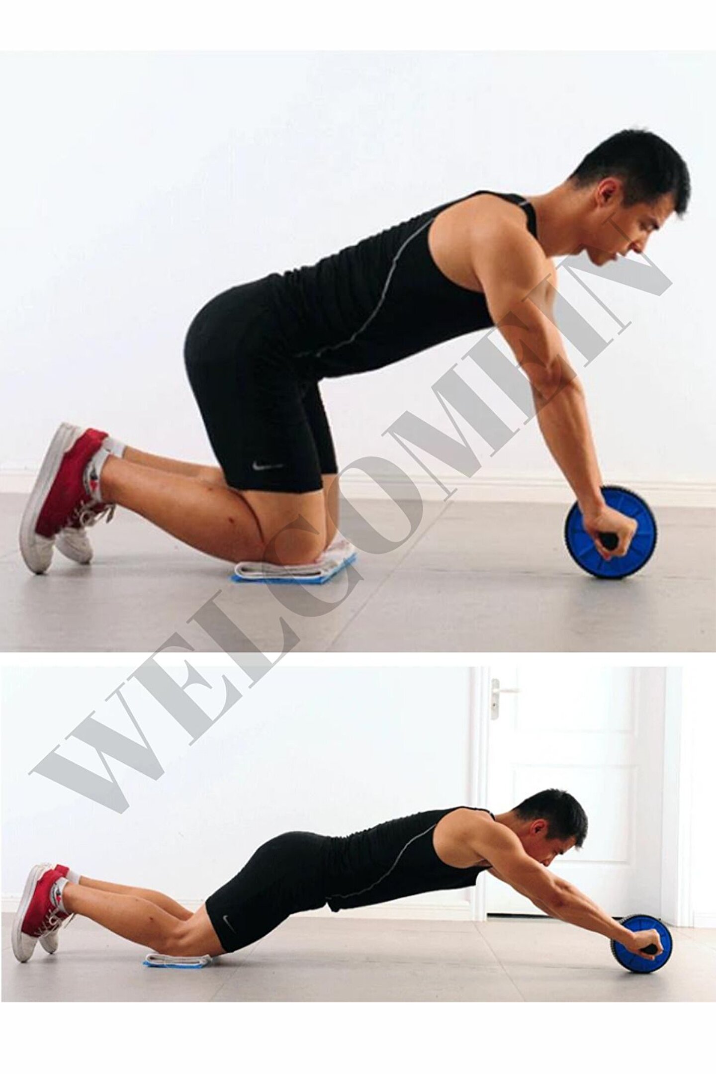 welcomein Ab Wheeler Tekerlek Matlı Fitness Kondisyon Mekik Spor Aleti Karın Kol ve Bacak Kası Etkili