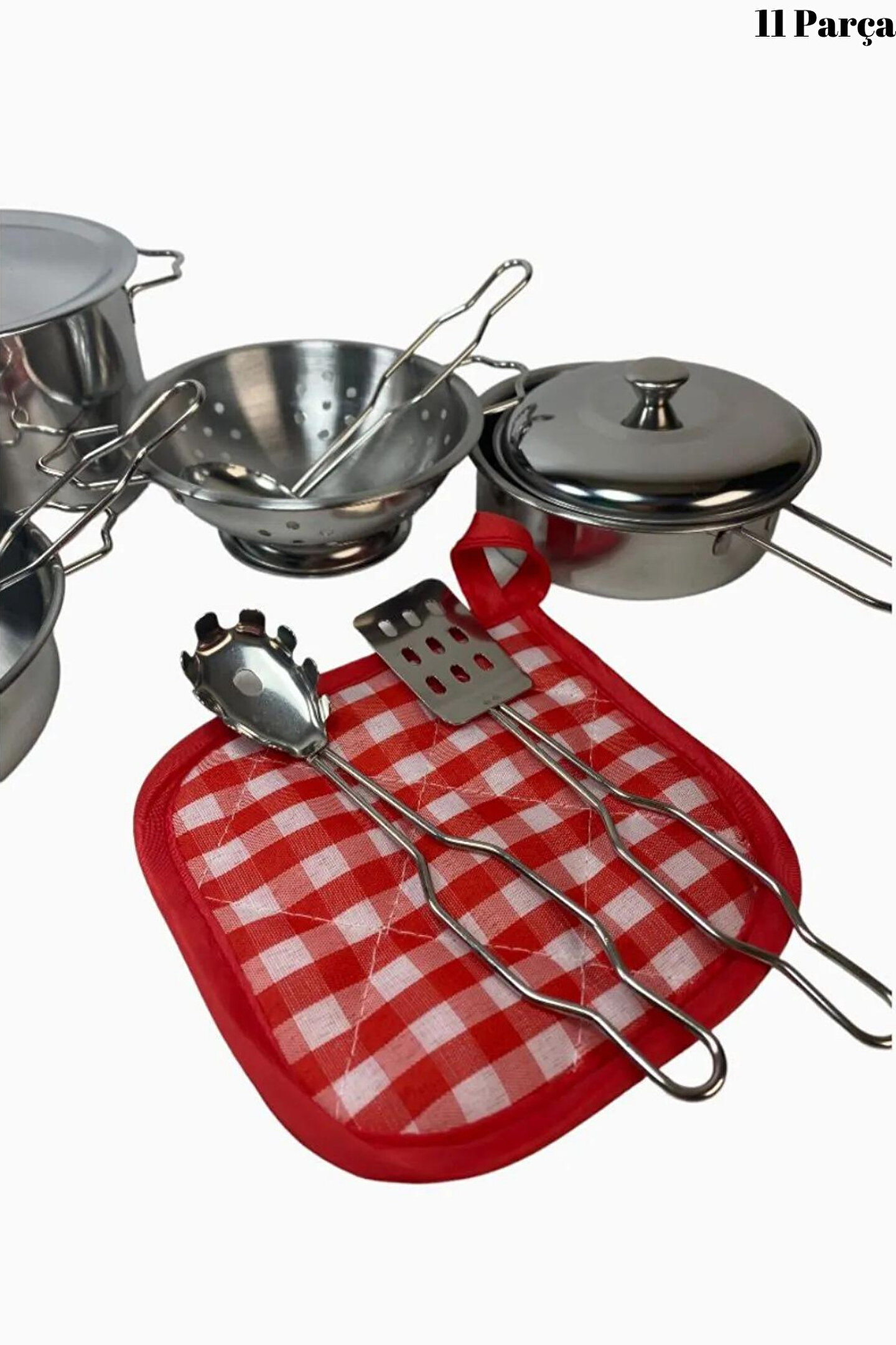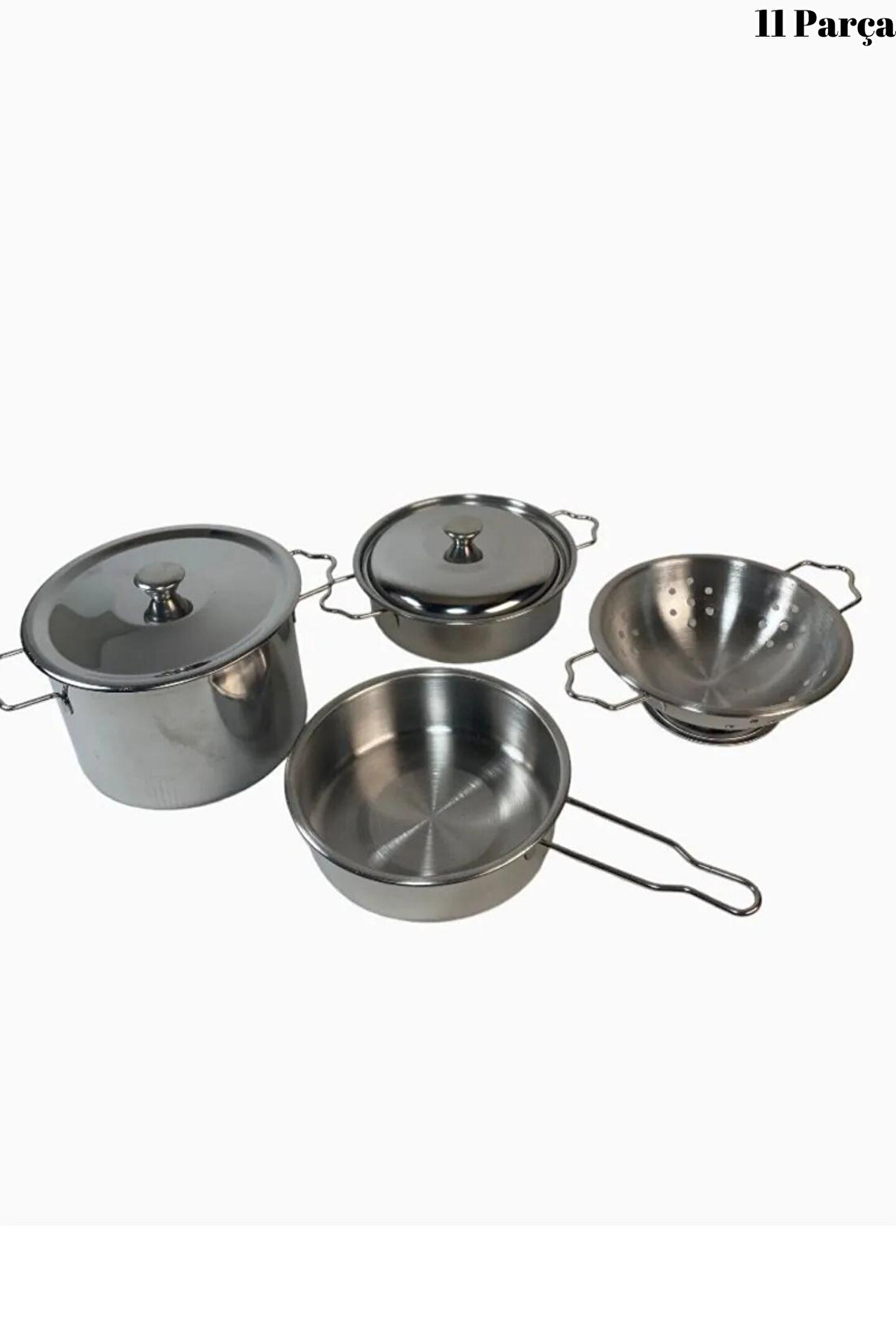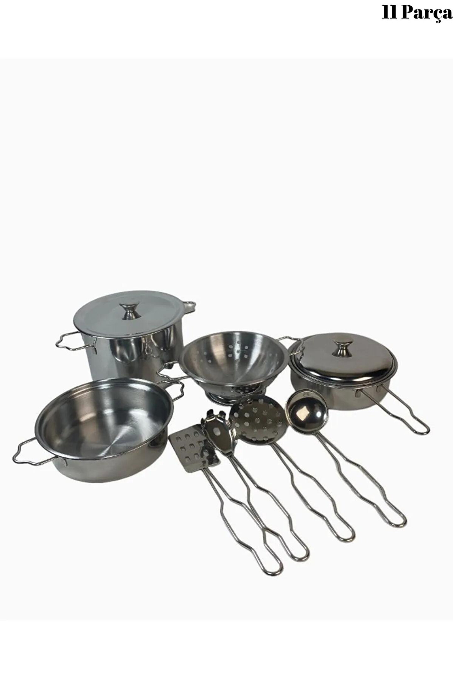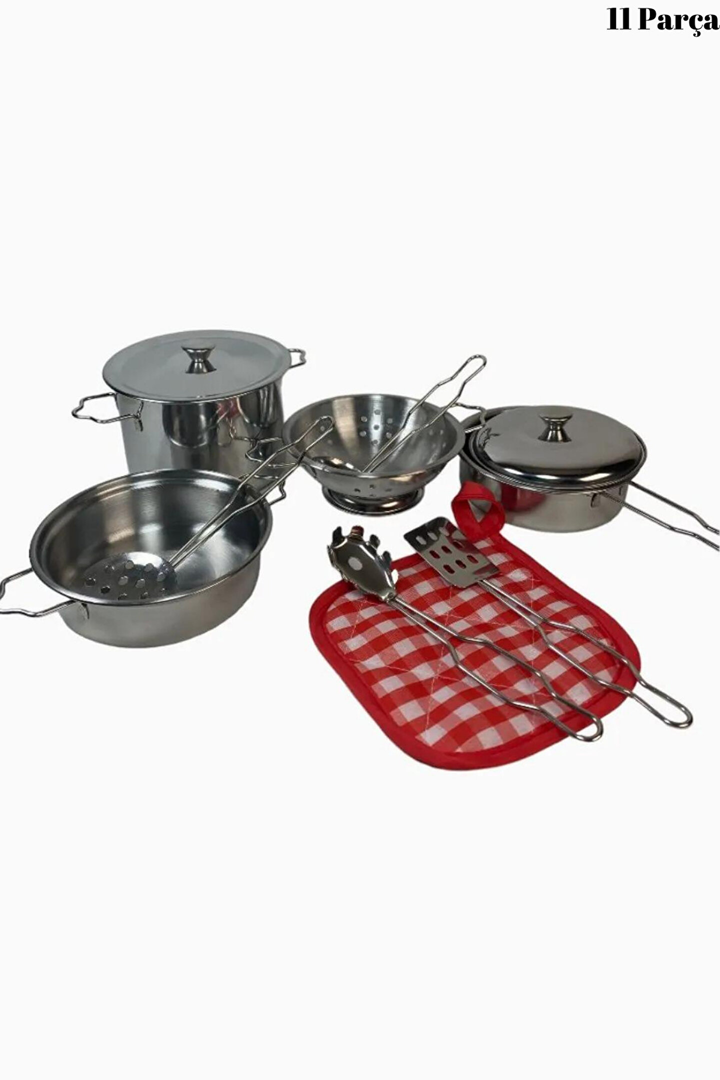 Metal Paslanmaz Çelik Oyuncak Tencere Seti 11 Parça Aksesuarlı - Evcilik Mutfak Oyuncak Tencere Seti, küçük şeflerin mutfağa olan ilgisini desteklemek ve eğlenceli bir oyun deneyimi sunmak amacıyla tasarlanmıştır. İşte bu oyuncak tencere setinin özellikleri madde madde: ; Malzeme:Set, yüksek kaliteli metal paslanmaz çelik malzemeden üretilmiştir. Bu sayede, çocuklar gerçek mutfak ekipmanlarına benzer bir deneyim yaşayabilirler. ; Parça Sayısı:Tencere seti, 11 farklı parçadan oluşmaktadır. Bu parçalar, çocukların hayal güçlerini kullanarak çeşitli yemekleri hazırlamalarına olanak tanır. ; Oyuncak Aksesuarlar:Set, mutfak oyunlarını daha eğlenceli hale getirmek için çeşitli aksesuarlar içerir. Bu aksesuarlar, çocukların yaratıcılıklarını geliştirmelerine yardımcı olabilir. ; Güvenli ve Dayanıklı:Paslanmaz çelik malzeme, setin dayanıklı ve uzun ömürlü olmasını sağlar. Aynı zamanda, oyuncak tencere seti çocuklar için güvenli bir şekilde tasarlanmıştır. ; Eğitici Değer:Bu oyuncak tencere seti, çocuklara temel mutfak becerilerini öğrenme ve sosyal becerilerini geliştirme fırsatı sunar. Ayrıca, takım çalışması ve sorumluluk duygusunu teşvik eder. ; Çeşitli Renkler ve Tasarımlar:Setin renkli ve çeşitli tasarımları, çocukların ilgisini çeker ve oyuncak mutfaklarındaki oyun deneyimini daha eğlenceli kılar. ; Hafif ve Taşınabilir:Set, hafif olması sayesinde çocukların istedikleri her yerde oyunlarını sürdürmelerini sağlar. ; Uygun Yaş Aralığı:Metal Paslanmaz Çelik Oyuncak Tencere Seti, genellikle 3 yaş ve üzeri çocuklar için uygundur. ; Evcilik Oyunları İçin Ideal:Bu set, evcilik oyunları sırasında çocukların hayal güçlerini kullanmalarına yardımcı olan mükemmel bir oyuncak seçeneğidir. ; Eğlenceli ve Öğretici Bir Deneyim:Çocuklar, bu oyuncak tencere setiyle eğlenceli bir şekilde oyun oynarken aynı zamanda temel mutfak becerilerini keşfeder ve öğrenirler. ; Hediye Seçeneği:Metal Paslanmaz Çelik Oyuncak Tencere Seti, küçük şeflere harika bir hediye seçeneği sunar, onların yaratıcılıklarını teşvik eder ve mutfakla olan etkileşimlerini artırır. ;