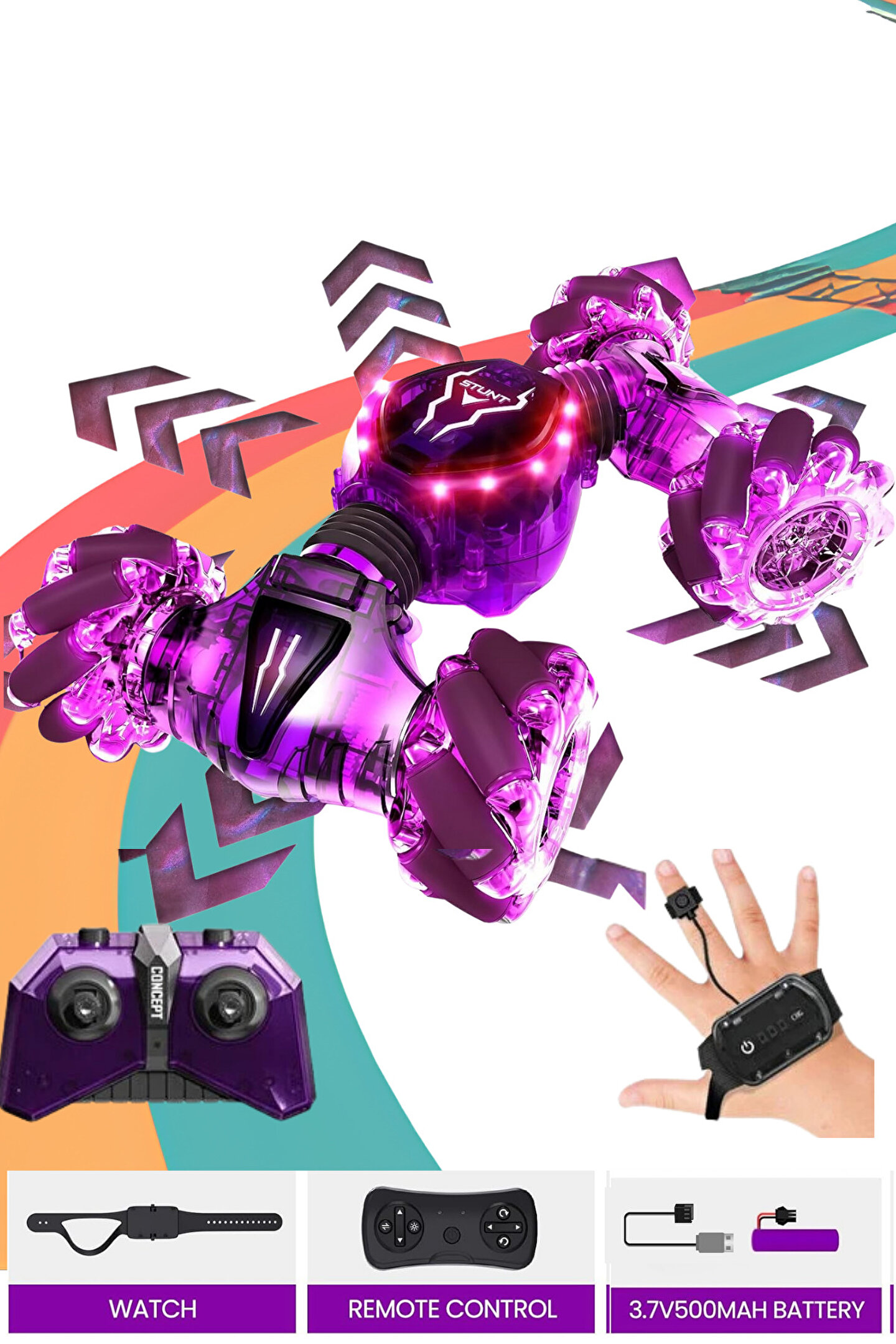 2; 4 GHz frekansında bir bilekten kumandalı ve bir uzaktan kumandalı olmak üzere 2 adet kumandaya sahiptir; Yatay gidebilen lastikleri sayesinde zorlu manevraları kolayca gerçekleştirebilir ve drift atabilir; Dikey hale gelebilen özelliği sayesinde eğlenceli ve heyecan verici sürüş deneyimi sunar; Tırmanma özelliği ile engelleri aşar; Güçlü led ışık efektleriyle donatılmıştır, hem gündüz hem de gece kullanımı için uygundur; Çocukların el; göz koordinasyonunun gelişmesine yardımcı olur; Çocuklar ve yetişkinler için eğlenceli ve dinamik bir sürüş deneyimi sunar; Kumandalar 2 adet ince(kumanda pili)pil ile çalışır; (piller dahil değildir);