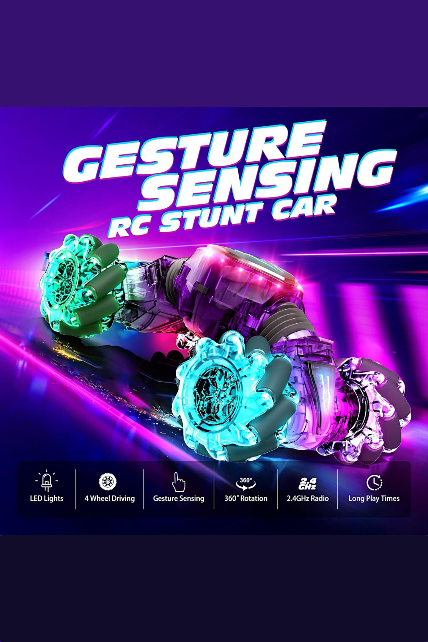 welcomein Oyuncak 2.4 GHz Bilekten ve Uzaktan Kumandalı Işıklı 4X4 Çift Kumandalı Akrobat Araba Şeffaf Model
