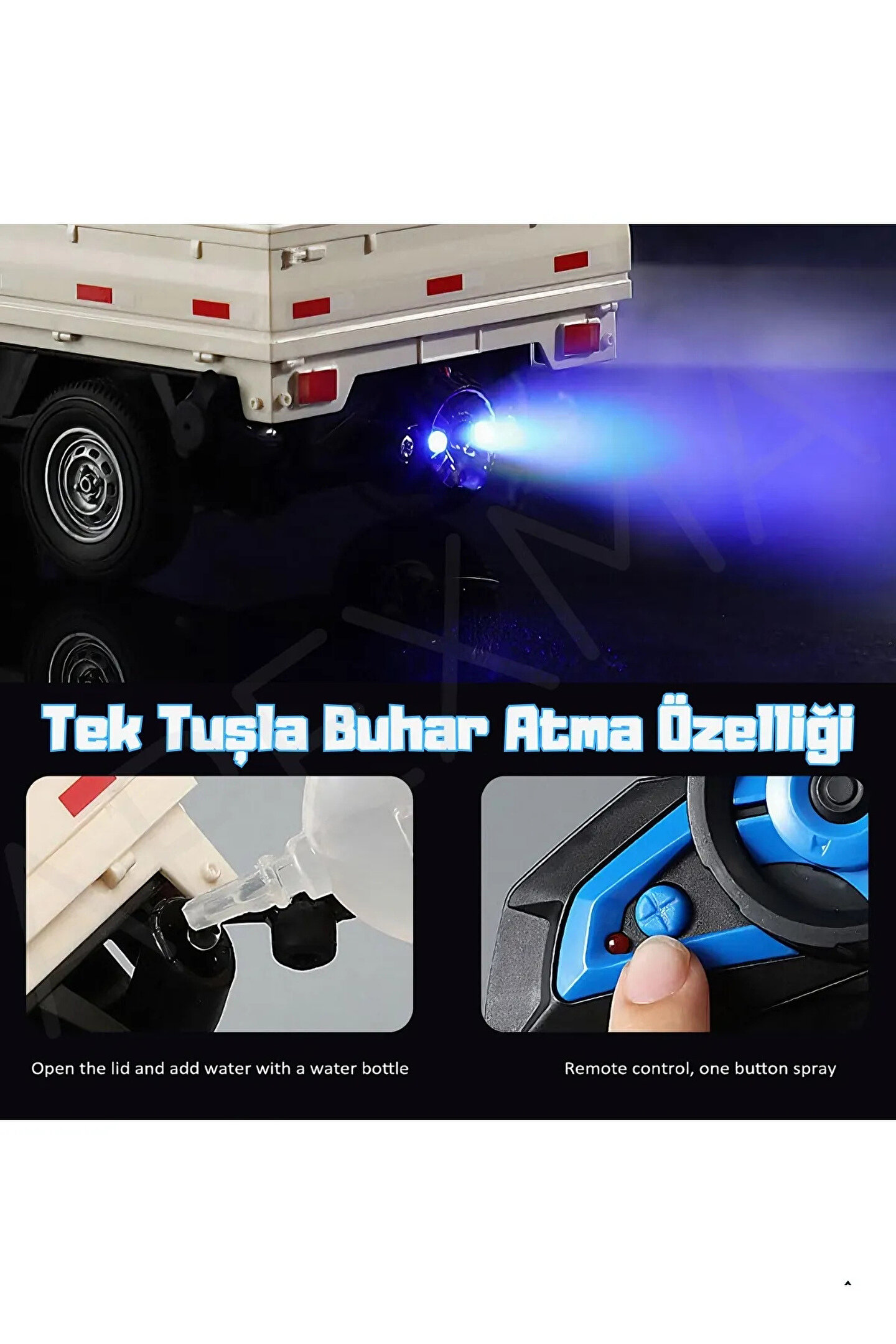 Çocukların hayal gücünü harekete geçiren bu 2.4GHz Uzaktan Kumandalı RC Kamyonet, sesli ve ışıklı efektleri, buhar püskürtme özelliği ve açılabilir kapılarıyla adeta gerçek bir kamyoneti aratmıyor! Şarjlı yapısı sayesinde uzun süreli oyun keyfi sunarken, güçlü uzaktan kumandası ile tam kontrol imkânı sağlar.