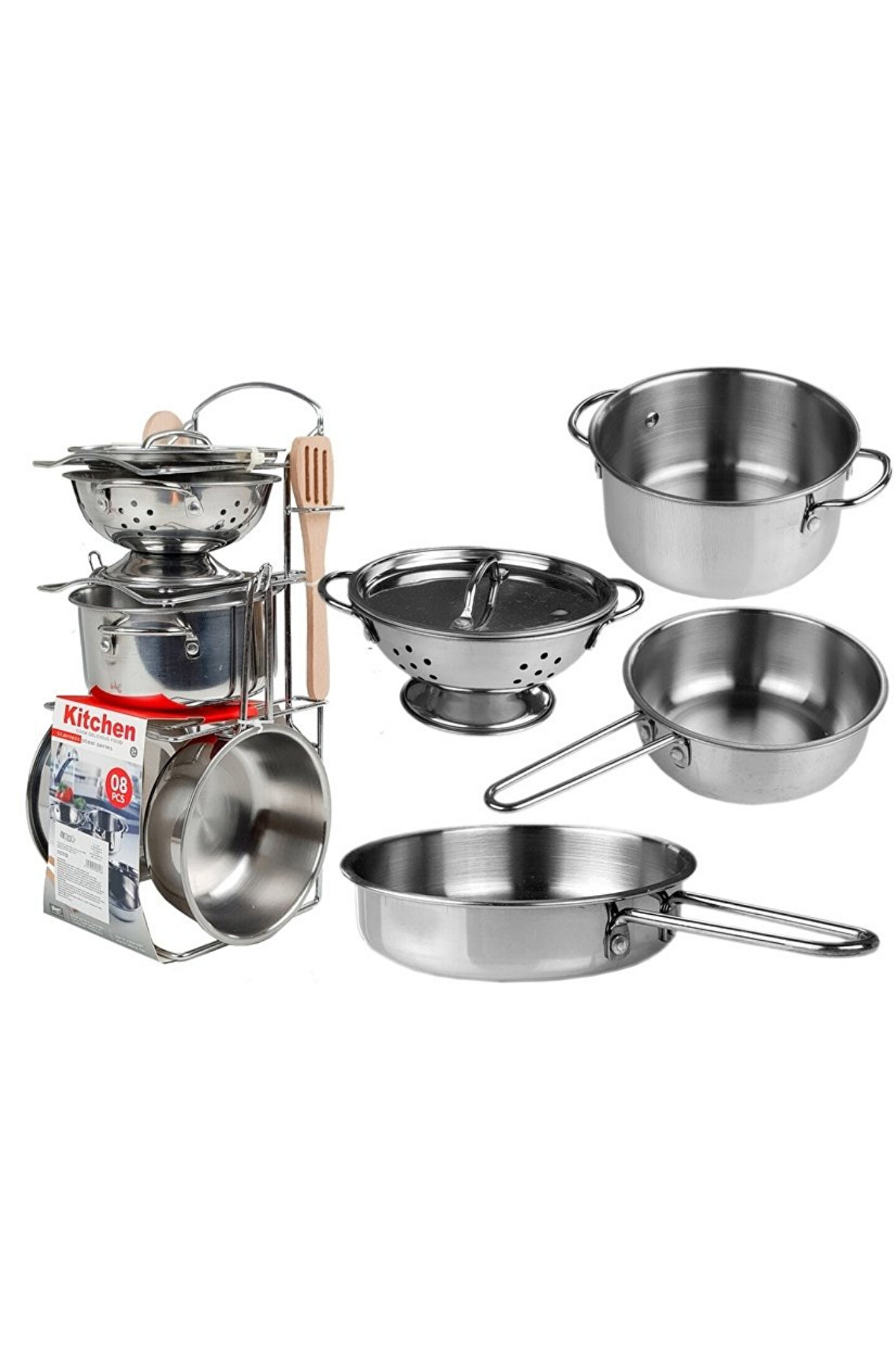 Ürün Adı: Oyuncak 8 Parça Raflı Standlı Çelik Tencere Tava Seti