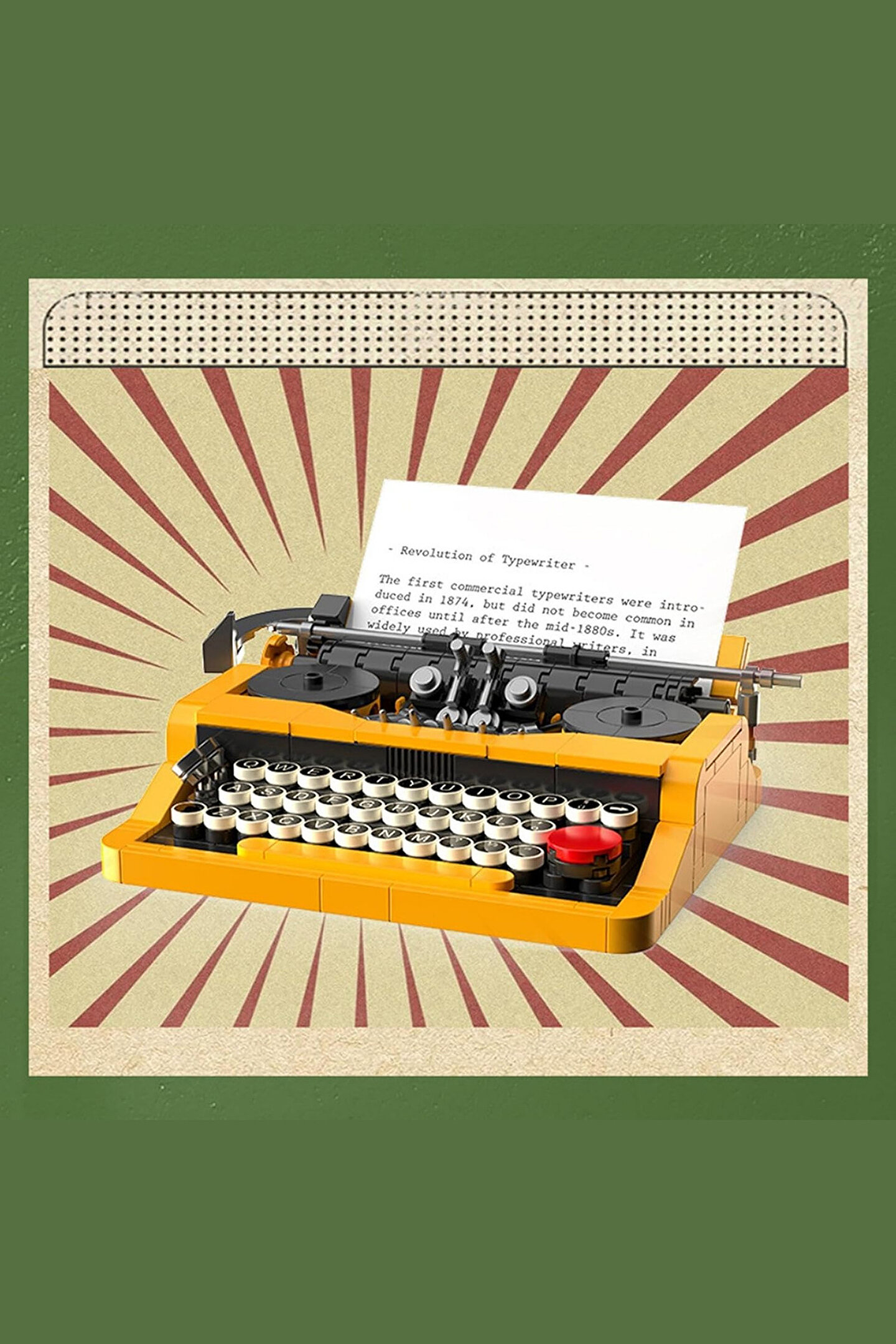- 254 parçadan oluşan bu oyuncak daktilo seti, çocukların yaratıcılıklarını ve el becerilerini geliştirmelerine yardımcı olur.; - 6 yaş ve üzeri çocuklar için ideal olan bu ürün, eğlenceli vakit geçirmelerini sağlar.; - Çin ana karasında üretilen bu oyuncak, güvenilir menşei ile kalite standartlarına uygun olarak tasarlanmıştır.;