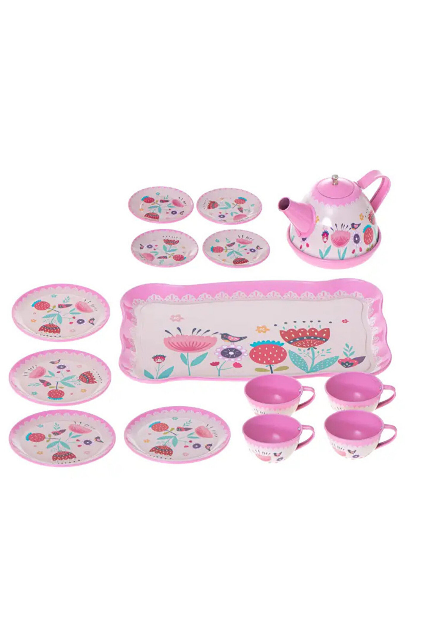 welcomein Oyuncak Evcilik Oyunu Aktivite 15 Parça Çiçekli Renkli Metal Çay Seti
