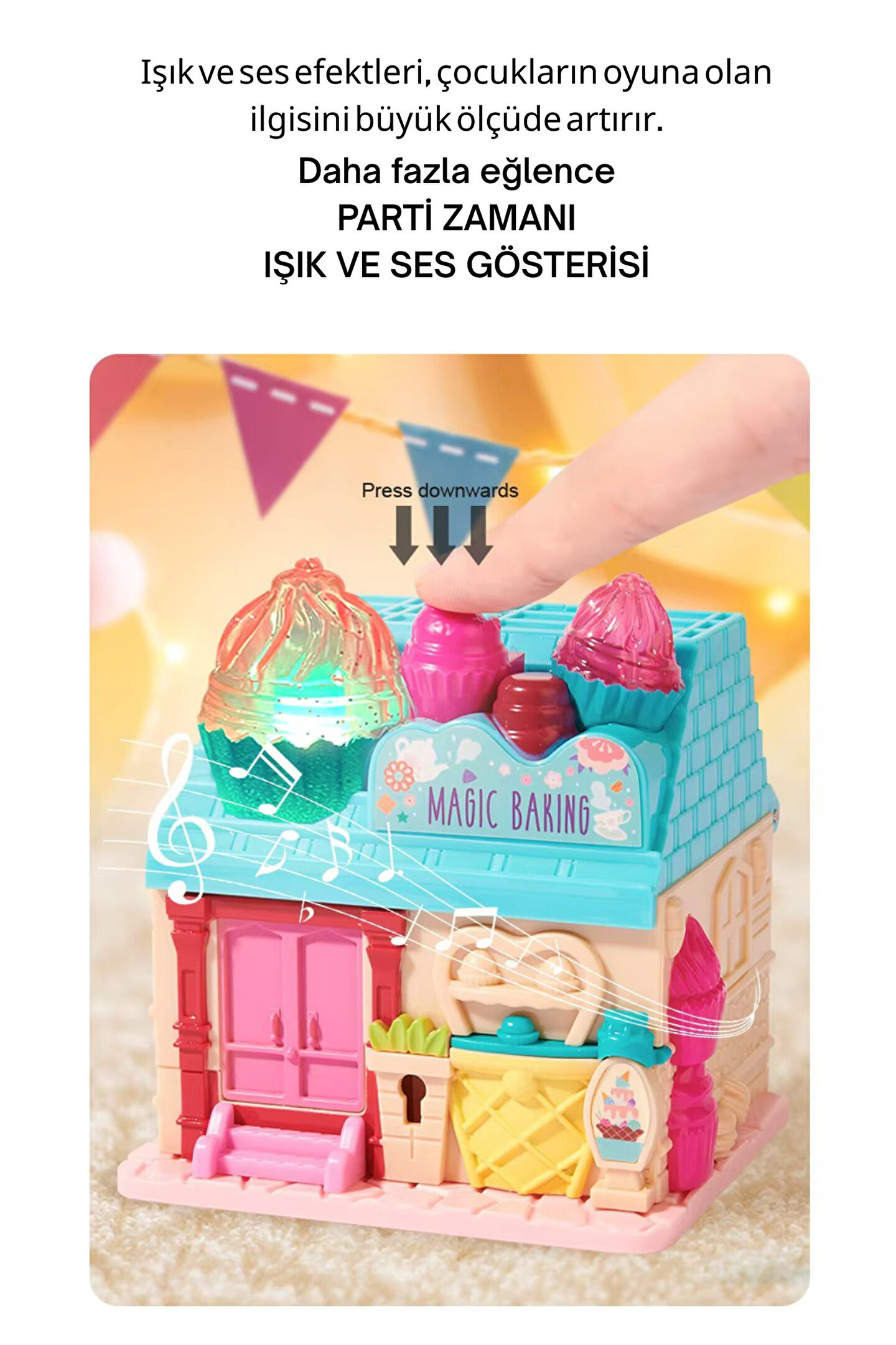 - 3 yaş ve üzeri çocuklar için ideal, eğlenceli ve öğretici bir oyuncak.; - Açılıp katlanabilen yapısı sayesinde kolayca taşınabilir ve saklanabilir.; - Işıklı ve müzikli aksesuarlarıyla çocukların ilgisini çeker ve oyun saatlerini daha keyifli hale getirir.; - Evcilik setleri, çocukların sosyal becerilerini ve hayal güçlerini geliştirmelerine yardımcı olur.; - Çin menşeli olup, kalite standartlarına uygun olarak üretilmiştir.;