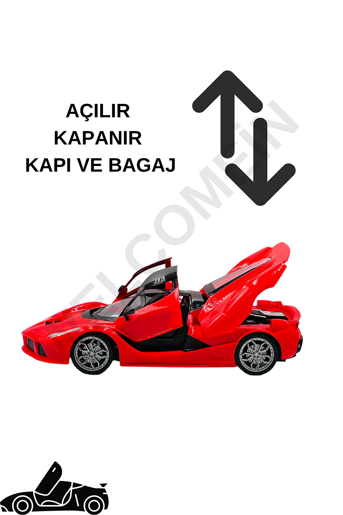 - Tam fonksiyonlu uzaktan kumandalı araba: İleri, geri, sağa, sola hareket etme ve drift atma özelliğine sahiptir. ; - Işıklı ön far: Araç, gerçekçi bir sürüş deneyimi sunmak için ön farlarıyla donatılmıştır. ; - Uzun kullanım süresi: 500 mAh bataryası sayesinde 30 dakikaya kadar kullanım süresi sağlar. ; - Hızlı şarj olma özelliği: 1 saat içinde tamamen şarj olabilir. ; - Kapı ve bagaj kontrolü: Uzaktan kumanda ile aracın kapılarını ve bagajını açıp kapatabilme özelliğine sahiptir. ; - Boyutlar: 11x27x7 cm boyutlarındadır.;