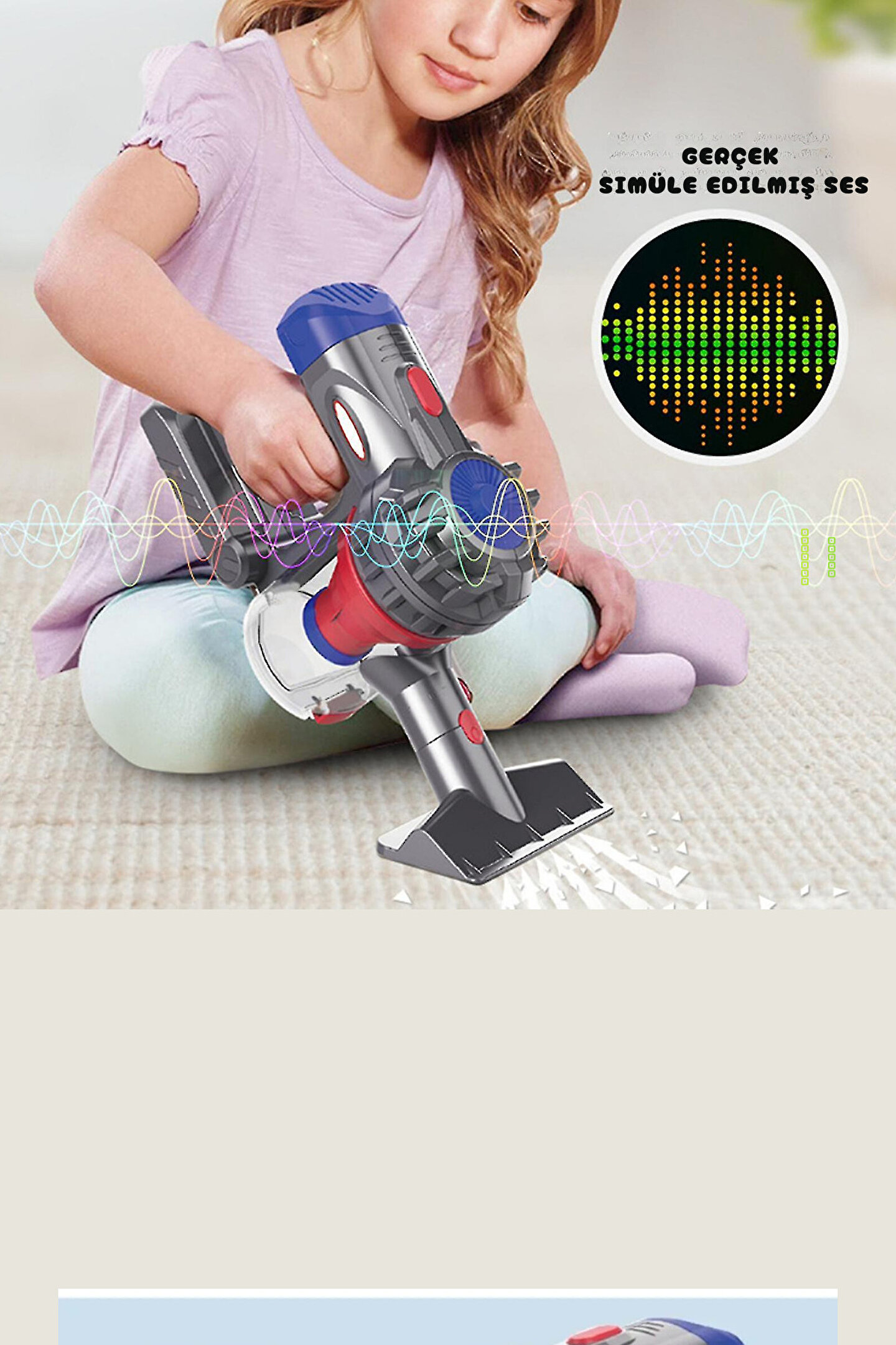Pilli sesli 35 cm model tutmalı elektrik süpürgesi 2ın1 oyuncak süpürge ; çocuklara eğlenceli temizlik deneyimi: 35 cm model tutmalı elektrik süpürgesi! ; çocuklarınızın temizlik konusundaki merakını canlandırmak ve onlara sorumluluk duygusu aşılamak için tasarlanmış bu oyuncak süpürge, gerçek bir temizlik deneyimi sunuyor. ; 35 cm gerçekçi tasarım:Modeli ile özdeşleşen gerçekçi tasarımı, çocuklara yetişkinler gibi temizlik yapma fırsatı sunar. ; ses efektleri ile canlı deneyim:Sesli efektlerle süpürme sesini taklit eder, çocuklara gerçek bir temizlik deneyimi yaşatır. ; 2ın1 fonksiyon:Çıkarılabilir kısımları sayesinde hem el süpürgesi olarak kullanılabilir hem de tutma kısmı çıkartılarak zemin süpürgesi olarak kullanılabilir. ; pilli çalışma:Ürün, piller ile çalıştığından çocuklar kesintisiz bir temizlik deneyimi yaşarlar. (piller dahil değildir) ; eğitici ve eğlenceli:Temizlik yapmayı öğretirken çocuklara eğlenceli bir oyuncak deneyimi sunar. ; gelişmiş motor yetenekleri:Çocuklar, süpürgeyi kolayca kontrol edebilir ve farklı zeminleri temizleme yeteneklerini keşfeder. ; hafif ve taşınabilir:Hafif tasarımı sayesinde çocuklar, süpürgeyi istedikleri yere taşıyabilir ve kendi oyun alanlarında özgürce kullanabilirler. ; güvenli malzemeler:Dayanıklı ve çocuk güvenliği standartlarına uygun malzemelerden üretilmiştir. ;