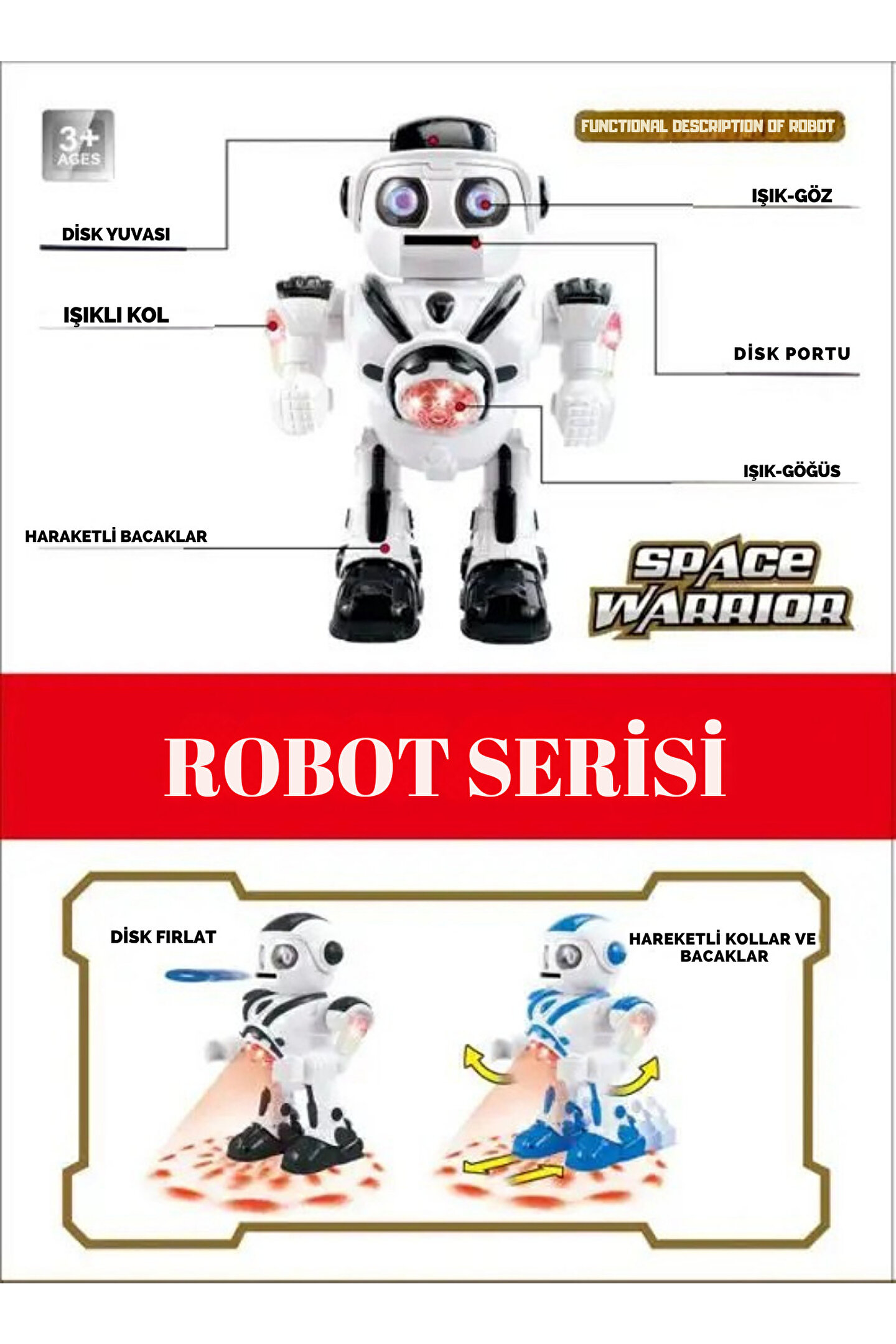 Disk Atma Özelliği: Robot, üzerine yerleştirilen diskleri atarak eğlenceli bir oyun imkanı sunar. Çocukların el-göz koordinasyonunu geliştirmeye yardımcı olur.