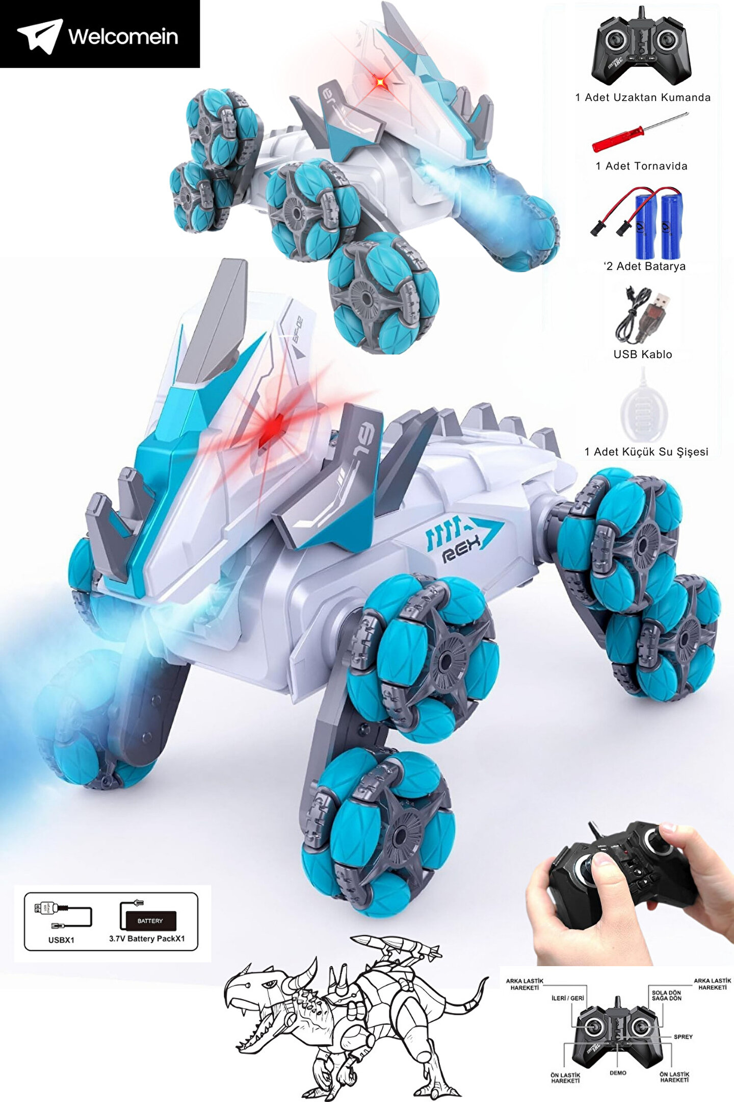 Buhar Atma Özelliği: Yerleşik sprey mekanizması ile harekete geçtiğinde buhar çıkararak dinamik bir deneyim sağlar. Çocuklar, hareket eden bir dinozorun keyfini çıkarırken, aynı zamanda maceralara da dalabilecekler!