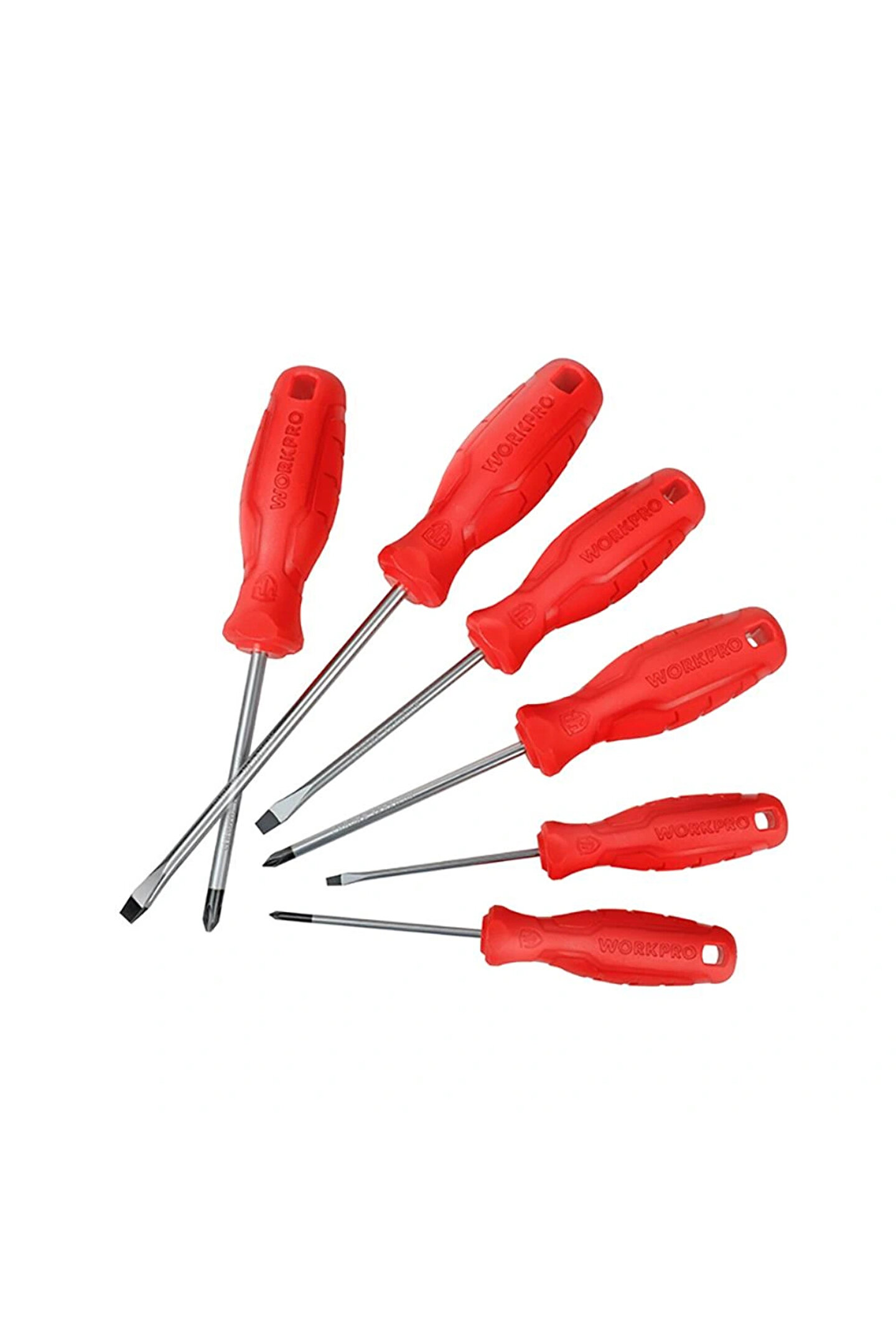 • WORKPRO WP200501 6 Parça CR-V Manyetik Profesyonel Tornavida Seti • Mekanik veya elektrikli aletlerin bakım ve onarımında, profesyonel olarak kullanılabilmesi için paslanmaya ve aşınmaya dayanıklı Manyetik Krom Vanadyum vidalama uçlarına sahiptir.; • Geliştirilmiş dayanıklılık, paslanma direnci ve korozyon önleyici özellik için ısıl işlem görmüş CR-V çelikten yapılmış 6 Parça Tornavida Seti.; • Geliştirilmiş güçlü, siyah manyetik uçlara sahip 6 Parçalı Tornavida Seti, dayanıklılık ve rahat kavrama sağlar.; • Tornavida setinin güçlü manyetik ucu, baş aşağı durumlarda bile vidanızı tutar.; Daha iyi kontrol sağlar.; • Rahat kullanım için kaymayan, kolay kavranan tutma sapı sayesinde konforlu kullanım imkânı.; • Üst düzey ANTI-SLIP sap tasarımı kaymayı önler, el yorgunluğunu azaltır.; • Yüksek kaliteli CR-V çelik kullanılmıştır, hassas ve ısıl işlemden sonra vidalama uçları daha sert ve dayanıklı hale getirilmiştir.; • İÇERİK: SL3x75mm, SL5.5x100mm, SL6.5x150mm DÜZ Tornavida.; • PH0x75mm, PH1x100mm, PH2x100mm YILDIZ Tornavida.