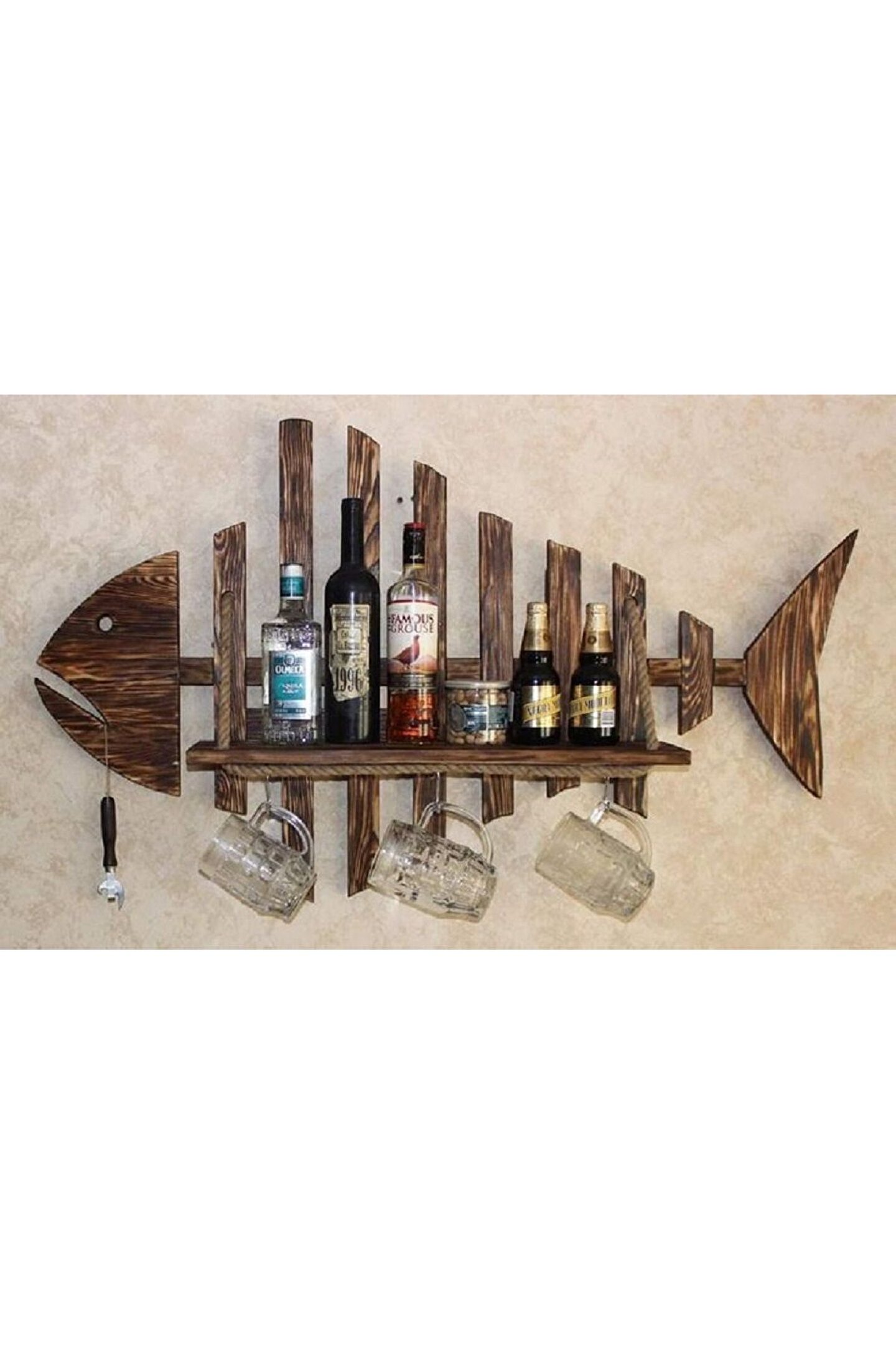 Balık Desenli Dekoratif Ahşap Şaraplık