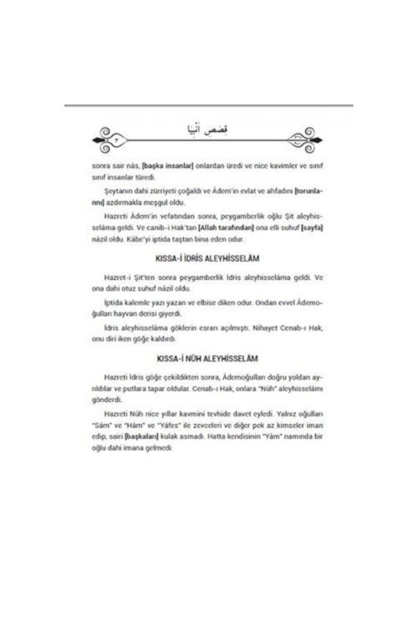 Kısas-ı Enbiya (Osmanlıca Türkçe) Ahmed Cevdet Paşa / Yasin Yayınevi Basım Yılı: 2022; Baskı: 1; Sayfa Sayısı: 414; Kağıt Türü: Şamuha Kağıt; Ebat: 17 x 24; Dil: Türkçe, Osmanlıca; Dil: Türkçe, Osmanlıca; Cilt Durumu: Ciltli; ISBN: 6053460169; ISBN: 9786053460169; Yazar: Ahmed Cevdet Paşa; Çevirmen: Murat Albayrak; KISAS-I ENBİYAKısas-ı Enbiya, Cevdet Paşanın hayatının son yıllarına doğru yazdığı bir eserdir.; Kitabın başlarında Hz.; Âdem’den Hz.; Muhammed’e kadar gelip geçen peygamberlerin kıssaları anlatılır.; İslâm dininin ortaya çıkışı, Hz.; Peygamber’in hayatı ve daha sonraki bölümlerde Hulefâ-yi Râşidîn ile Emevî, Abbasî halifelerinden, diğer İslâm devletlerinden ve Osmanlı tarihinin ilk devirlerinden bahseder.; Daha çok eğitim ve öğretim gayesiyle kaleme alınan eserin tamamı on iki cüzdür.; İlk altı cüzü Cevdet Paşa’nın sağlığında basılmıştır.; Tam ve yanlışsız şekli ise kızı Fatma Aliye Hanım tarafından on iki cüz halinde neşredilmiştir.; Bu eserinde yer yer üslûp şaheseri denebilecek örnekler ortaya koyan Cevdet Paşa’nın dili, birçok yazar tarafından takdirle karşılanmıştır.; Eser halk tarafından kısa zamanda benimsenmiş ve en çok okunan siret kitaplarından biri haline gelmiştir…Ahmet Cevdet Paşa, bu eserinde siret sahasında kendisinden önce ve sonra yazılan kitaplardan çok değişik bir üslup kullanmaktadır… Paşa merhum çeşitli olayları hikâye ederken, adeta o dönemin içinde yaşamış ve hadiselere bizzat şahit olmuş biri gibi canlı bir anlatımla yazmaktadır.; Yazarın Türkçesi çok güzeldir, üslûbu edebidir.; Kitabın en çok dikkat çeken yönlerinden bir tanesi de üslubundaki sadelik, samimiyet ve sıcaklıktır.; Yazar, Peygamber Efendimizden bahsederken “Hatemu’l-Enbiya hazretleri”, Resul-i Ekrem, Fahr-i Âlem yahut Fahr-ı Kâinat gibi geçmiş büyük âlimlerin kullandığı isimleri kullanır.; Peygamberimiz ve onun ashabını coşkulu bir saygı ve sevgiyle anlatır… Onların zaferlerine, başarılarına sevinir; yenilgilere üzülür, kederlenir… Peygamberimiz’in mübarek isimlerini andıktan sonra daima “sallallahu aleyhi ve sellem” ifadesini ya da “aleyhiekmeluttehâyâ” gibi dua cümlelerini mutlaka ilave eder.; Resulullah’ın ashabı hakkında, önceki salih âlimlerin kullandığı “ashab-ı kiram” ashab-ı güzin” gibi hürmetli ifadeler kullanmaya özen gösterir.; Onların isimlerinden sonra mutlaka “radiyallahu teâlâ anh” gibi dua cümlelerini getirir.; Resulullah’a olan gönül bağı, hürmet ve muhabbeti, onun hasımlarından söz ederken yine ortaya çıkar.; “O müminler kendi aralarında merhametli kâfirlere karşı serttirler” ayet-i kerimesine imtisal ederek; müşriklerin ismi geçtikçe onlardan “lânetullahi aleyh” gibi yerici ifadelerle söz eder.; KISAS-I ENBİYÂ Bu çalışmamızda Kısas-ı Enbiya’da çok sık olarak geçen bazı kelimelerin anlamlarını örneklerle açıklamak istedik.; Bu kelimeler geçtikleri cümlenin anlaşılması bakımından anahtar sözcüklerdir.; Bunlar cümlede çoğunlukla “zarf olarak” kullanılırlar.; Eseri Osmanlıca aslından yahut yeni harflere çevirisinden takip eden okuyucunun, kitabı okumaya başlamadan önce bu açıklamaları okuması yararlı olacaktır.; Böylece yazarın üslubunu anlamak için iyi bir başlangıç yapmış olacak ve eseri sıkılmadan okuyabilecektir… Gayret bizden, başarı Allah’tandır…