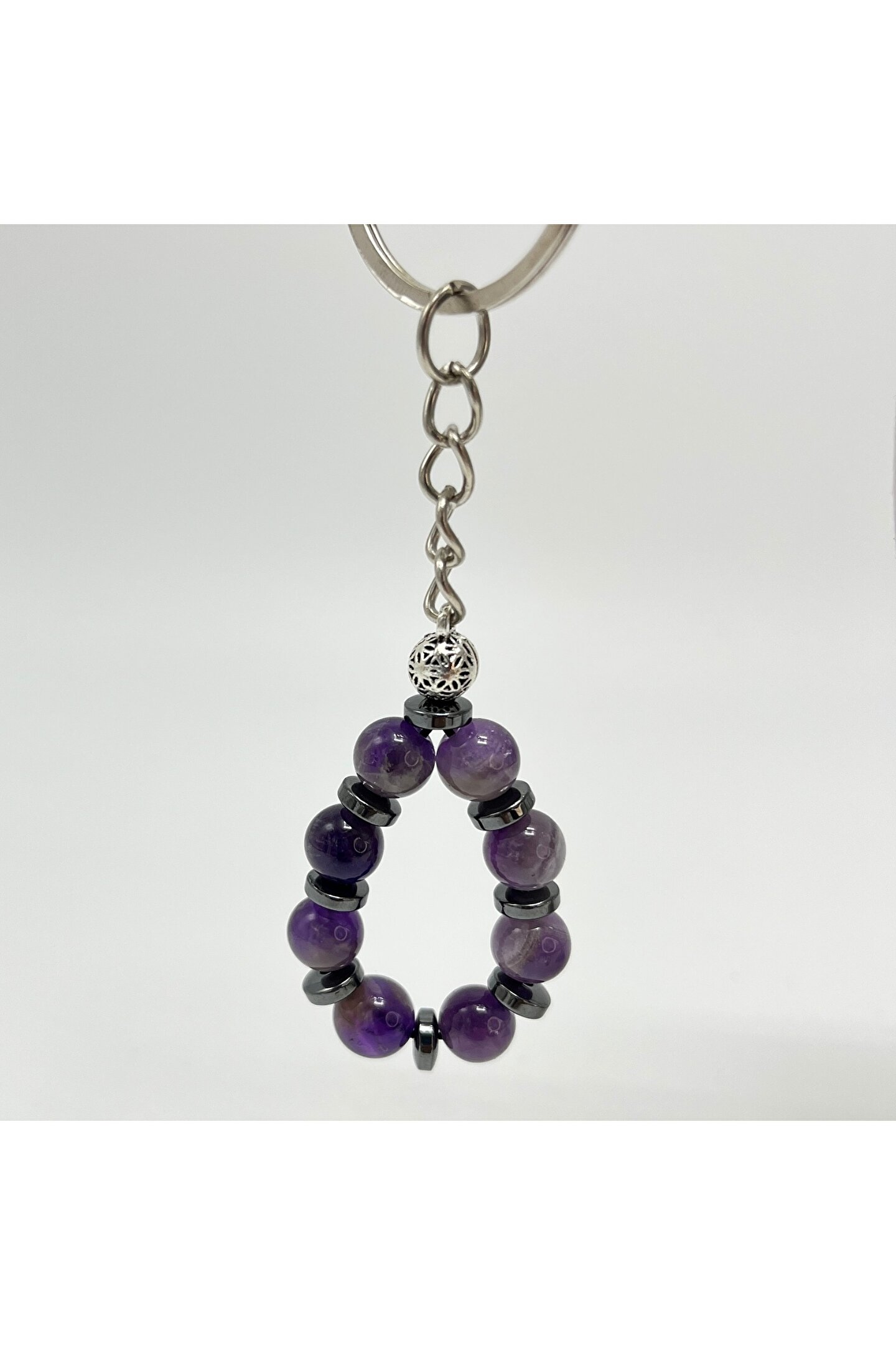 YILDIZ DOĞAL TAŞ SERTİFİKALI Ametist Doğal Taş Anahtarlık 8mm