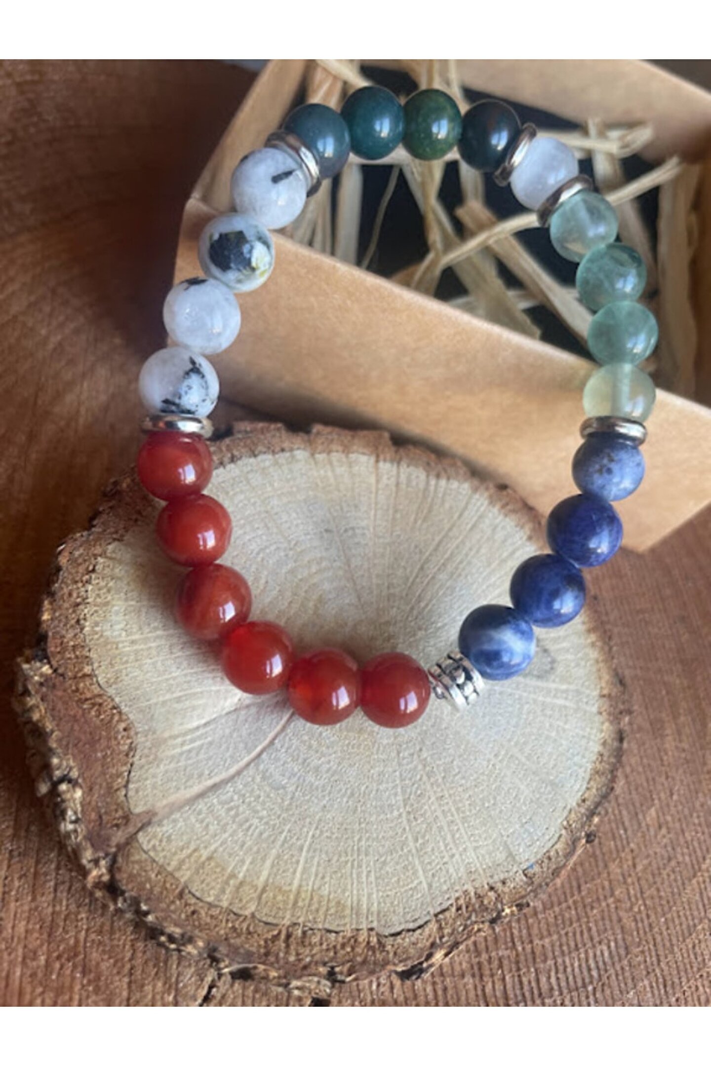 - Doğal taş kullanımı sayesinde her bileklik benzersiz ve otantik bir görünüm sunar; - Doğal taş materyali ile hem şıklığı hem de doğallığı bir arada yaşatır; - El yapımı ve özgün tasarımıyla dikkat çeken bu bileklik, kişisel tarzınızı yansıtır; - Doğal taşların eşsiz renk ve desenleri, her kıyafetle uyum sağlayarak stilinizi tamamlar;