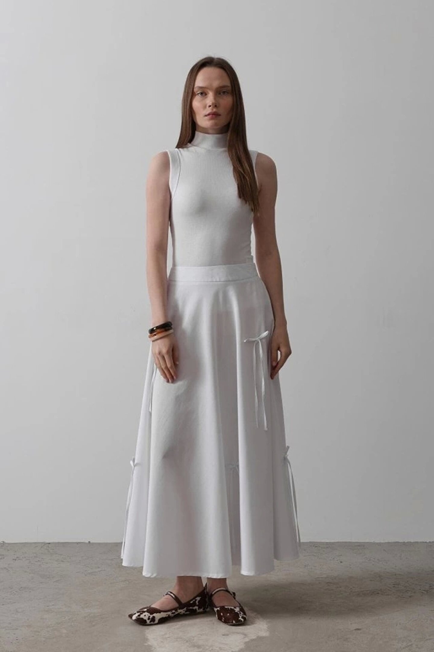YOMNA Fiyonk Kloş Etek - Beyaz