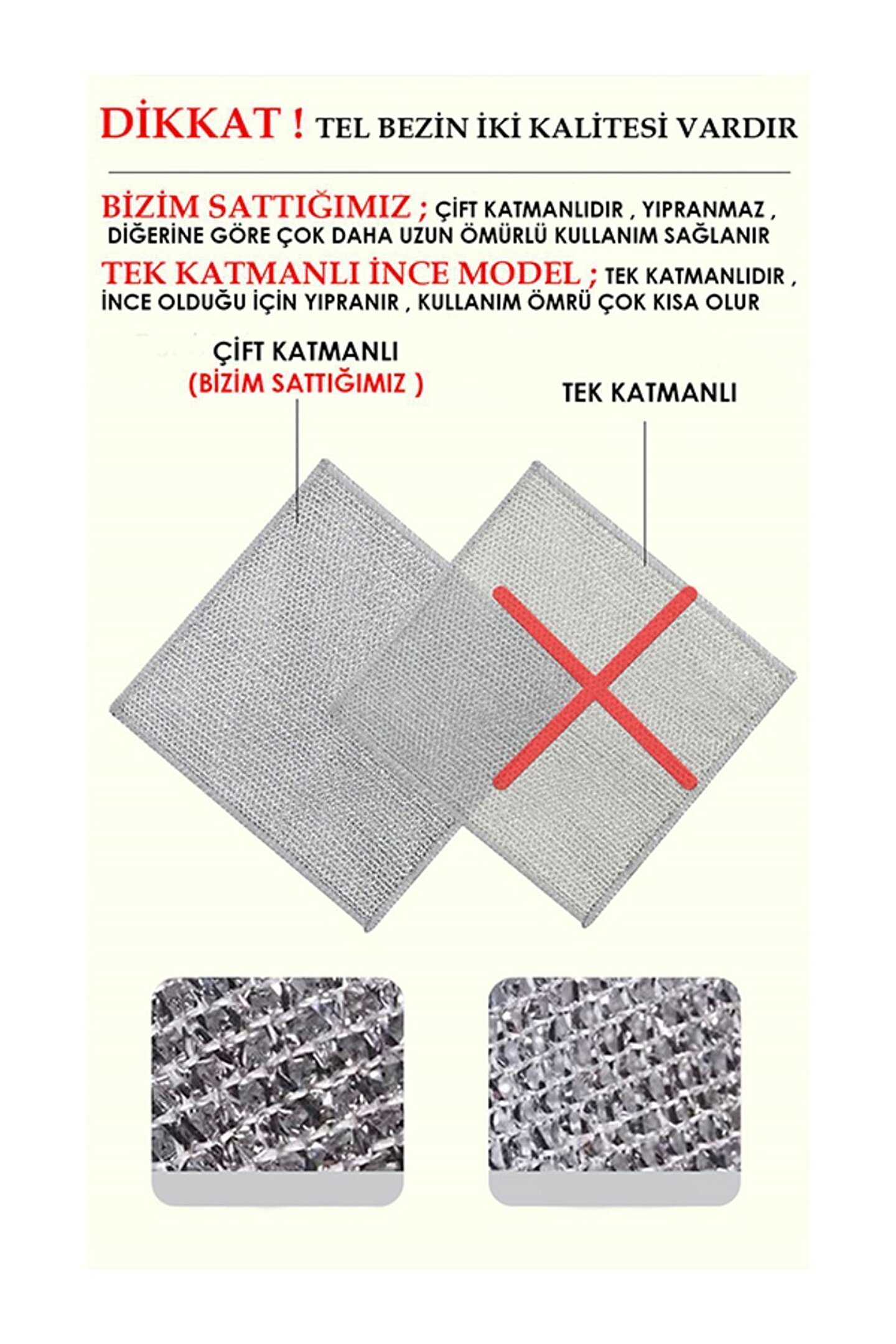6adet çizmez çelik tel bulaşık bezi ile mutfağınızda pratik temizlik sağlanır.; Dayanıklı çift katmanlı yapısı sayesinde tencere, tava ve mutfak gereçlerini çizmeden kolayca temizler.; Yağ, kir ve kurumuş yemek artıklarını etkili şekilde çıkarır.; Uzun ömürlü kullanım için idealdir.;