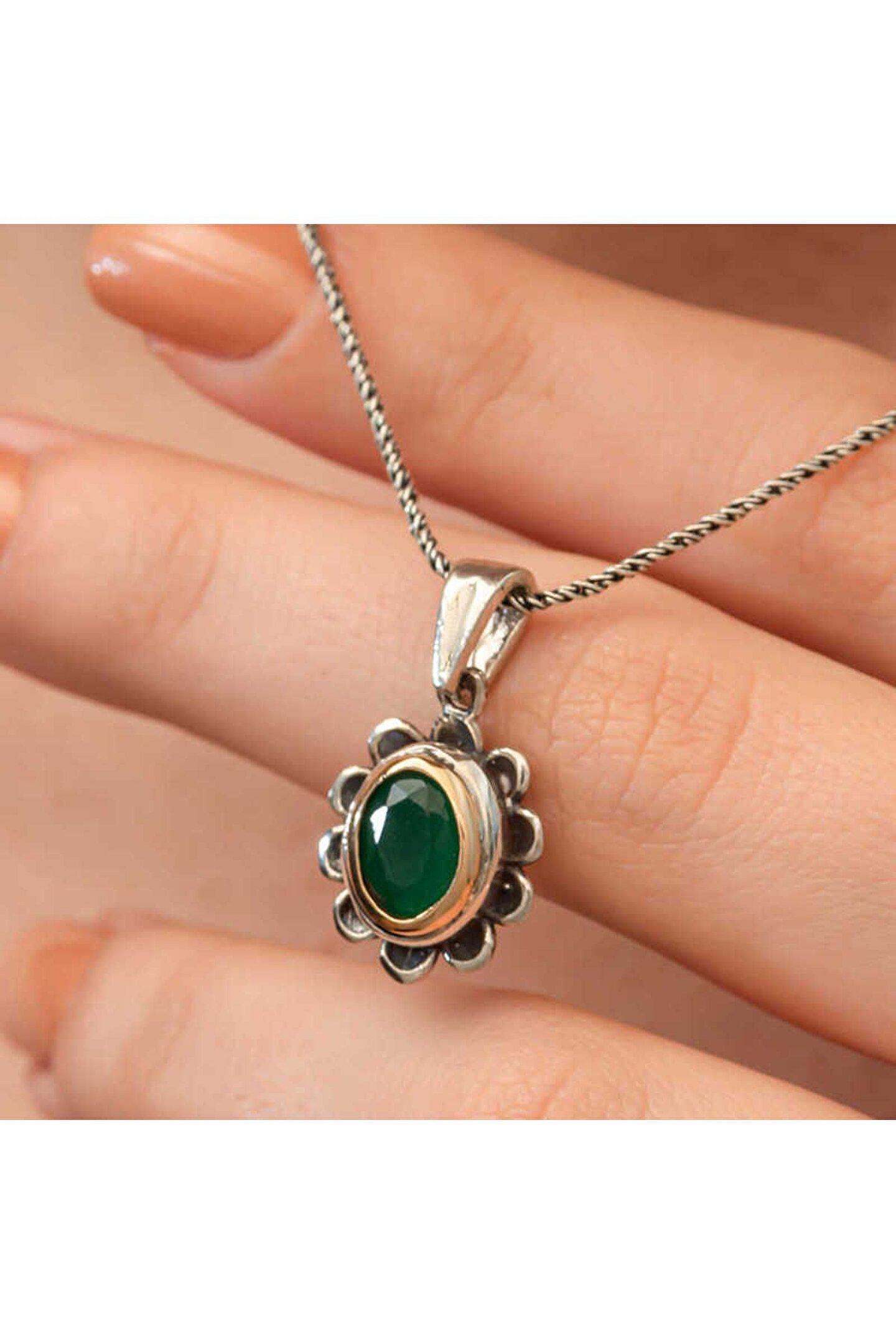 Dogal Taşlı 925 Ayar Gümüş Kolye Akik Doğal Taş 2mm