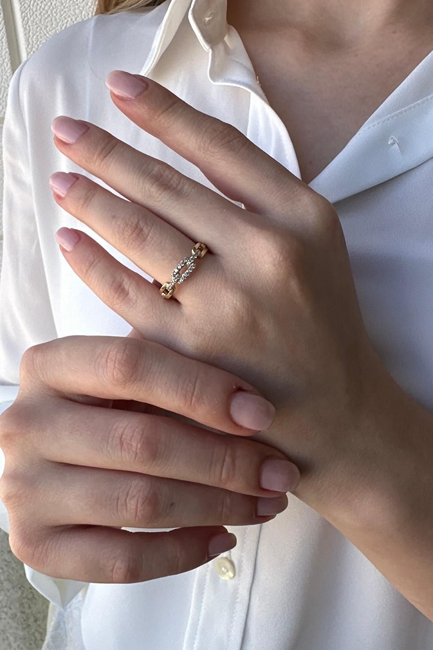 14 Ayar Altın Kadın Geçmeli Zirkon Taşlı Yüzük