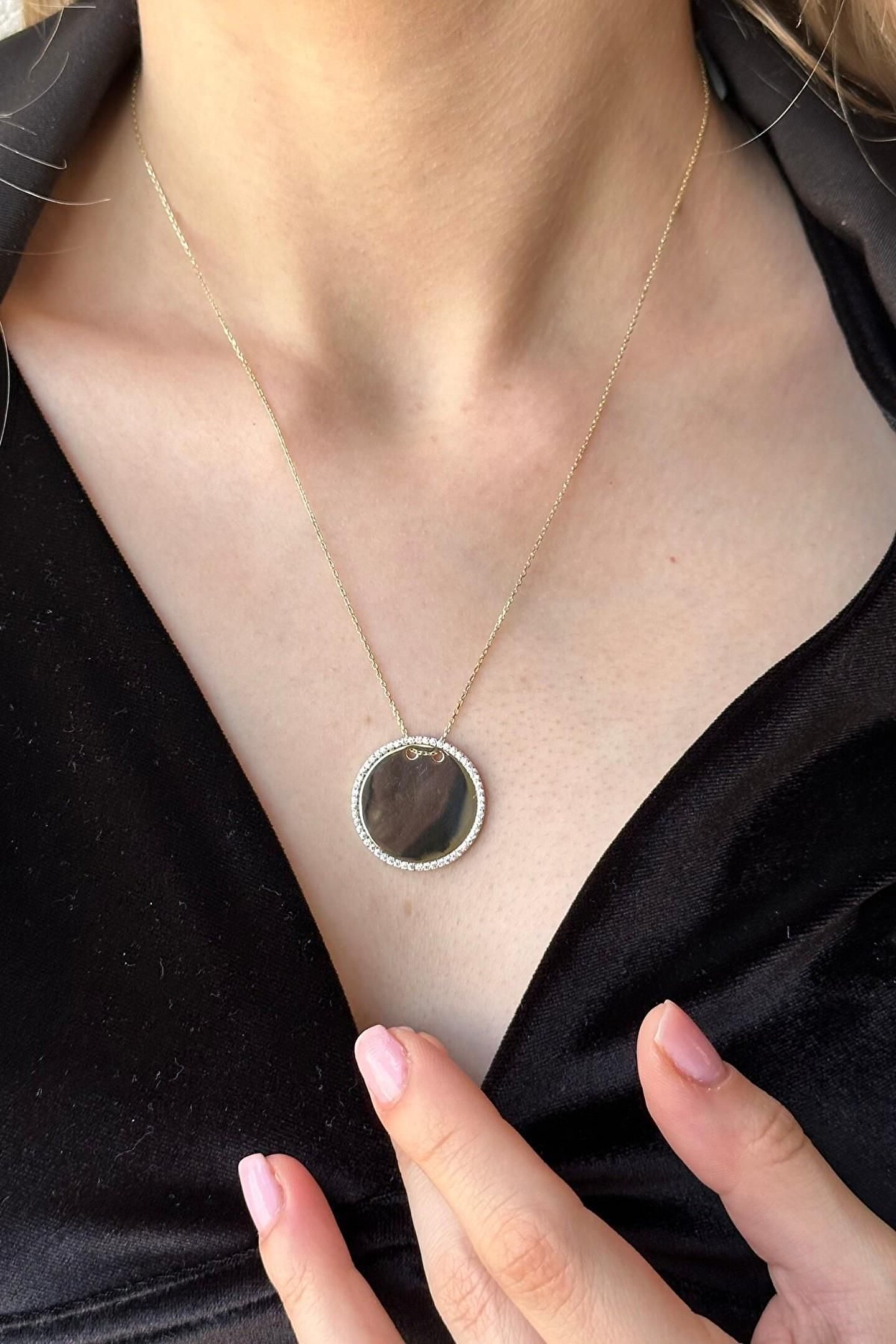 14 Ayar Altın Kişiselleştirilebilir Çevresi Zirkon Taşlı Kolye