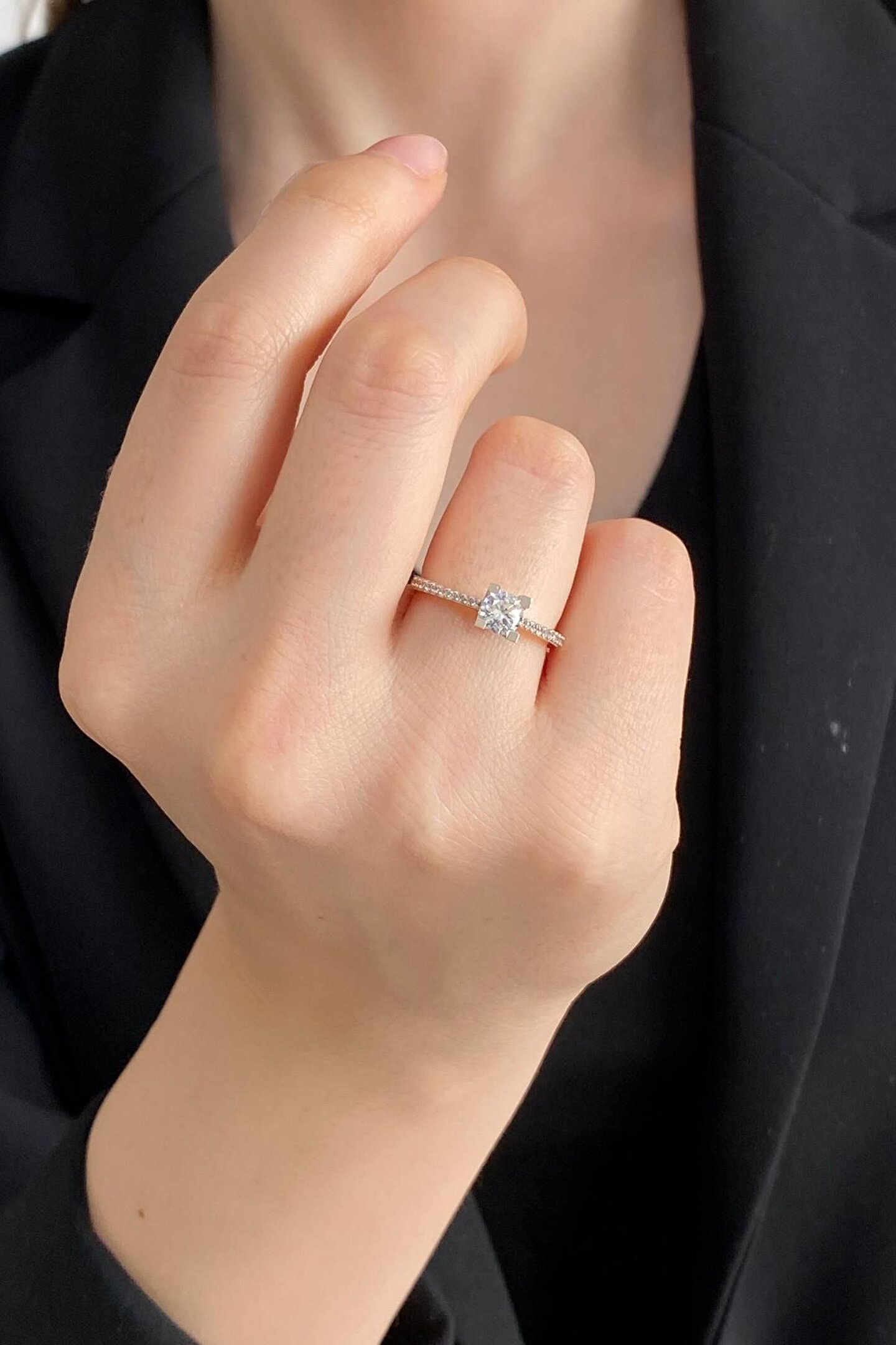 14 Ayar Altın Kurdale Detaylı Tektaş Yüzük