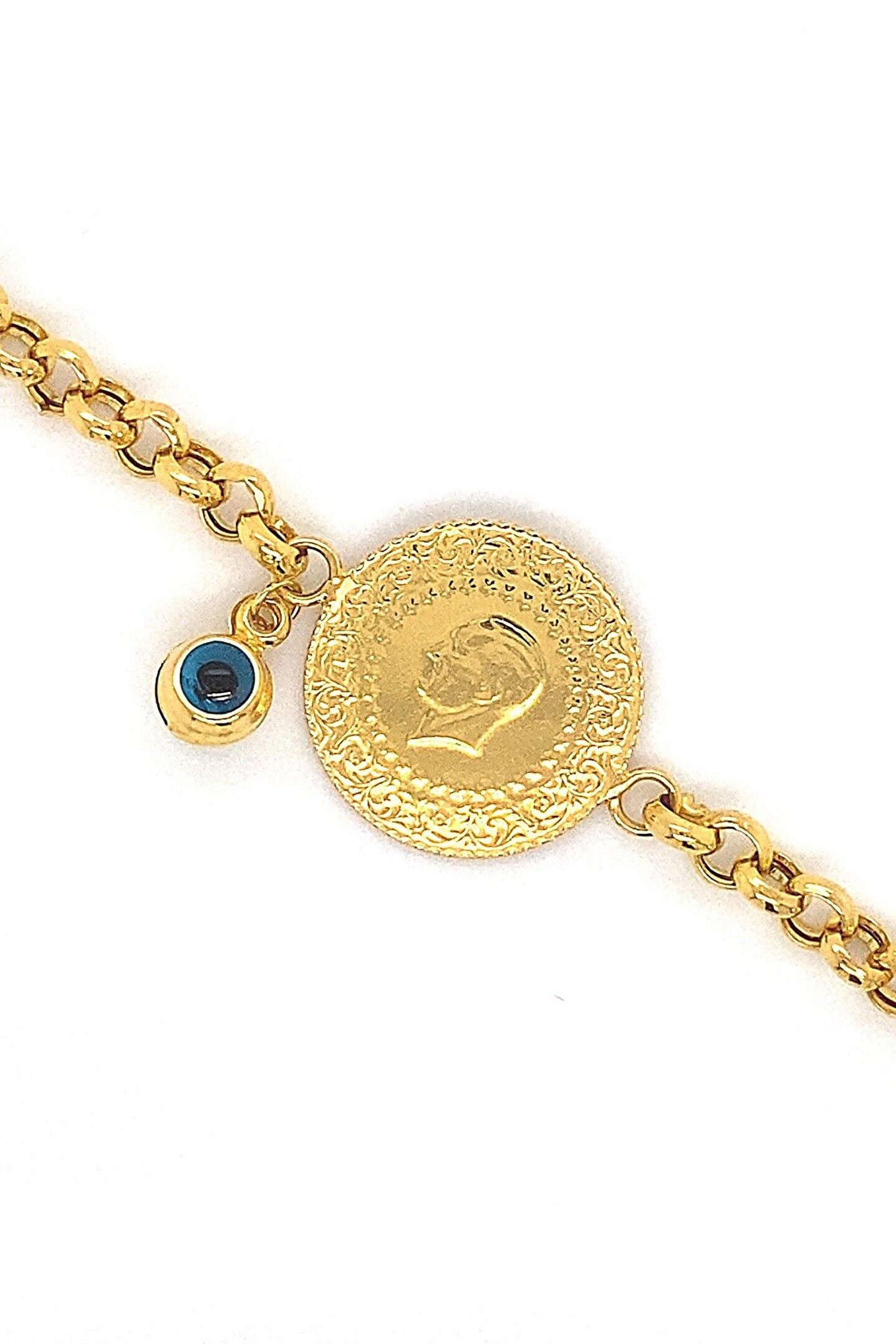 14 Ayar Altın Nazar Boncuklu Çeyrek Altınlı Kadın Bileklik