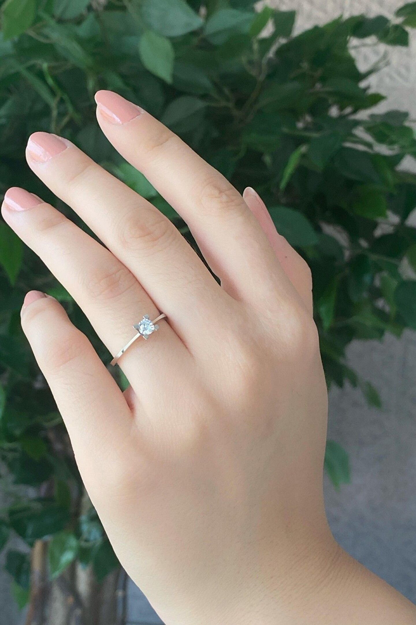 14 Ayar Beyaz Altın Kadın Tek Taş Yüzük