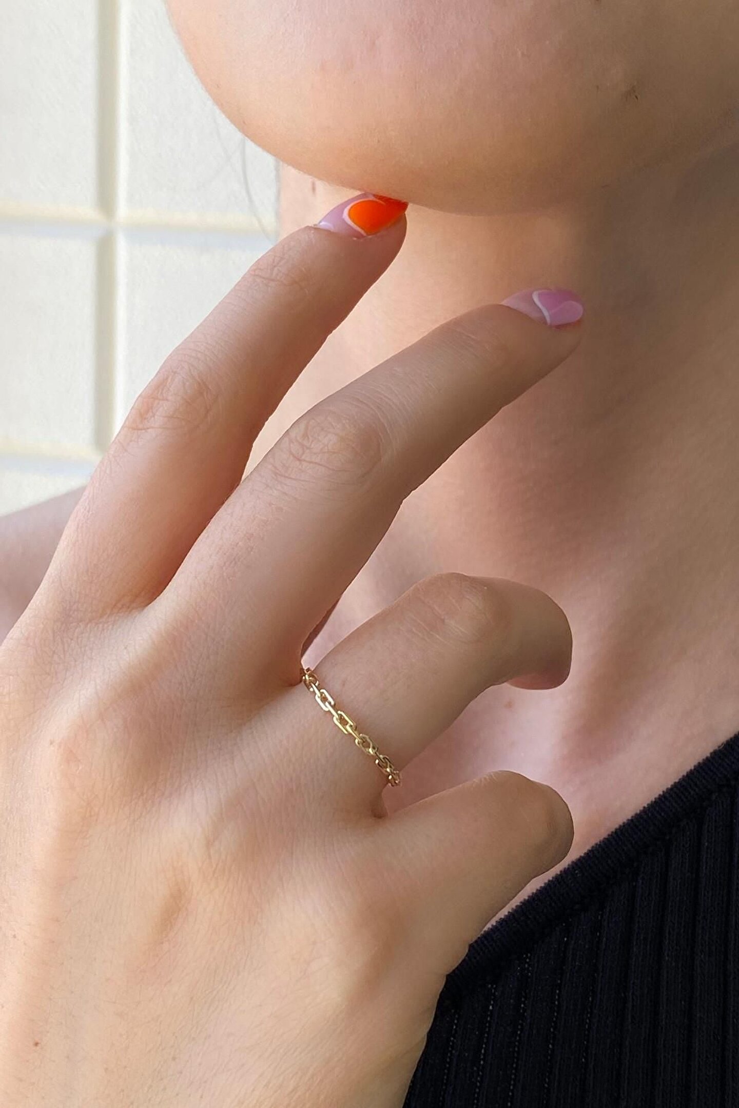 14 Ayar Yeşil Altın Kadın Yüzük Minimal Zincir